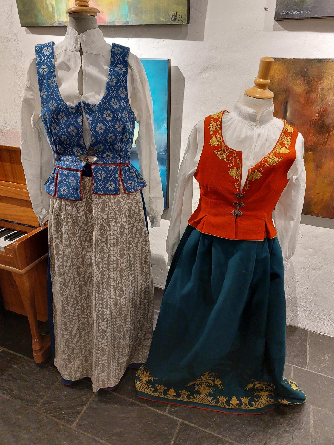 Solveig Strand fra Norsk institutt for bunad og folkedrakt holdt et interessant foredrag om bunader – historie, materialer og bruk. Hun forklarte at det er forskjell på folkedrakt, som ble brukt av bønder i førindustriell tid og bunaden som kom til omkring 1850. På 1800-tallet viste kunstneren Adolph Tiedemann stor respekt for bøndene med sine skisser av ulike folkedrakter.