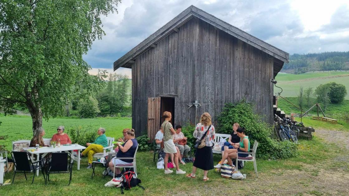 Det var en flott, varm dag i sola, og da det kom noen få regndråper, var det fint å kunne trekke inn under tak i stua eller på låven.