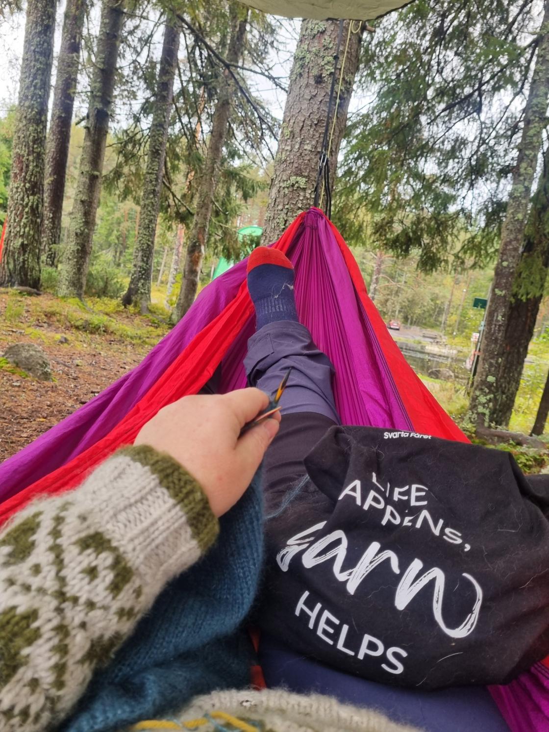 En fin søndag i september, møttes vi til å strikke, hengende i hengekøyer!
