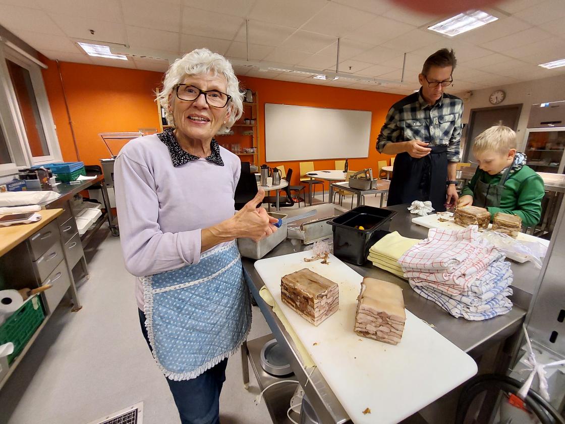 Den andre kvelden ble syltene tatt ut av pressene, og de så flotte ut! Smaken var god også. Syltene så ulike ut og smakte forskjellig. Både lærer og deltakere var fornøyde. Unni hadde en omvisning med oss i skolens hudpleieavdeling, før vi til slutt gikk tilbake til kjøkkenet og spiste lefse med velsmakende sylteskiver.
