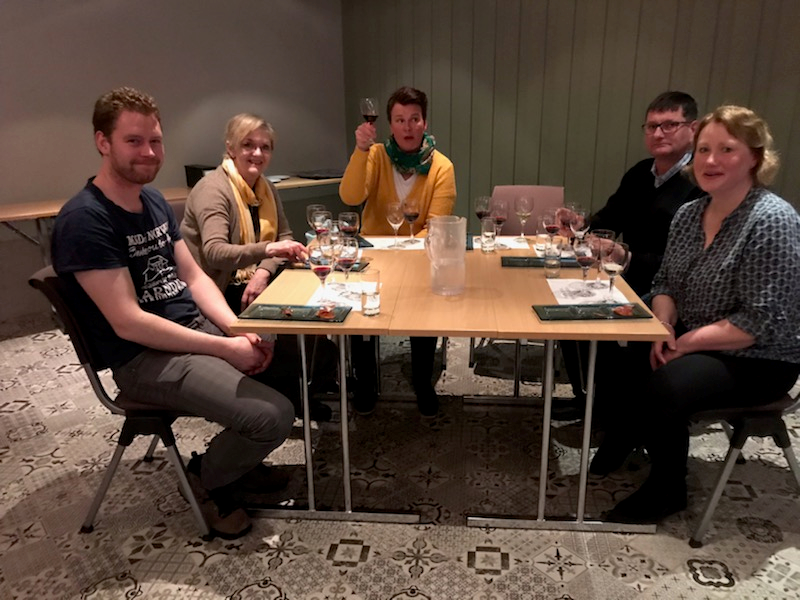 Den første vinen vi smakte på var en hvitvin, Belle Vue d’Arthus. Anita oppfordret oss til å snurre på glasset og kjenne på luktene først. Når vinen får luft, kommer luktene bedre fram. Deltakerne kjente forskjellige dufter. Deretter luktet og smakte vi på rødvinen Poseidon. Hvitvinen og Poseidon var fra Bordeax-distiktet. Den tredje vinen var en rødvin fra Bourgogne-distriktet: Francois Confuron-Gindre (Pinot Noir).
