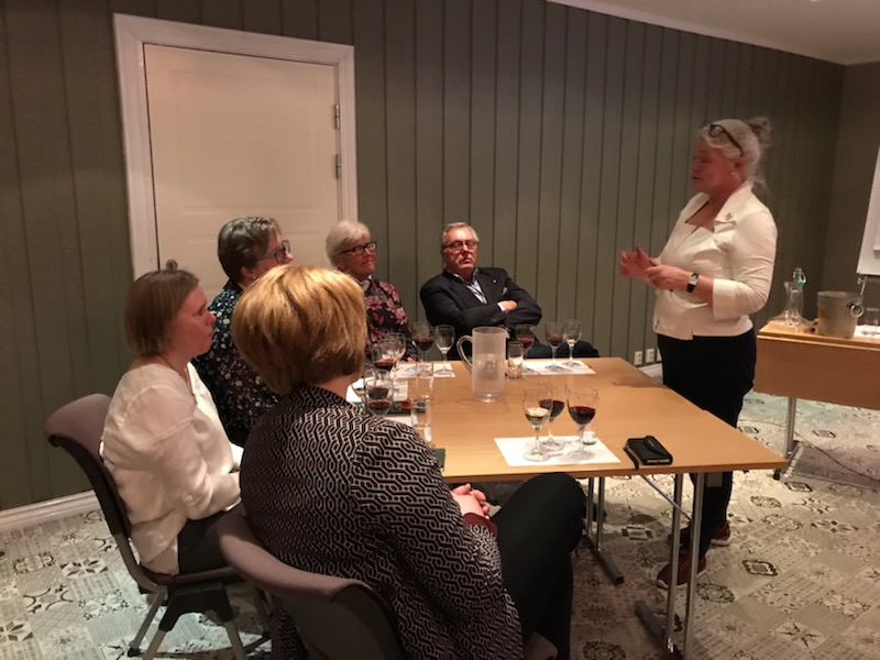 Det ble hyggelig stemning da medlemmer av bygdekvinnelaget og bondelaget var samlet på Raumergården hotell for å lære om vin.