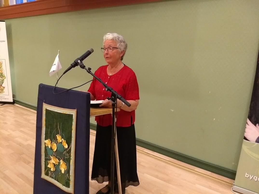 Her er bilete av helsinga frå Nesjane bygdekvinnelag. Det var helsing frå alle dei andre lokallaga i Gloppen, frå Sogn og Fjordane bygdekvinnelag og frå Noregs bygdekvinnelag.