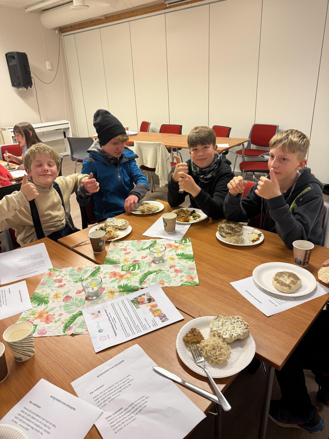 Spennande og god Tryllewok med både grønnsaker, eple, litt kyllingbitar og nudlar, mjuke og fristande klappekaker, sprø og gode røstipotet og nydeleg eplemost - kjempegodt alt i hop. Her var det i alle fall berre blide ungar og tommelen opp då vi til slutt samlast inne i storsalen på Klippen for å smake på alt som var laga.
