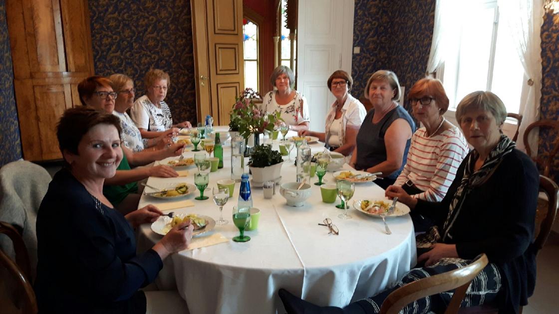 10 forventningsfulle damer møttes på Ramstdkrysset til felles avreise. Sommerturen gikk til Eidsverket Gods på Bjørkelangen hvor vi møtte staslige gamle bygninger i historiske omgivelser
