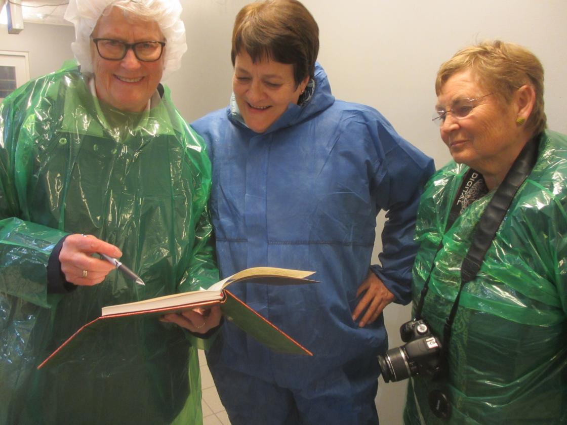 27.04 2017 treftes bygdekvinnene på Tunga gard i Heddal. Dette er eit topp moderne fjos der det meste er automatisk drift. Men fjosrøktar Hallgeir Bakkalia må følge med kvar dag. Alt i alt er det ca. 150 dyr å sjå etter. Vi ser at det er solselle på dei store uthustaka.