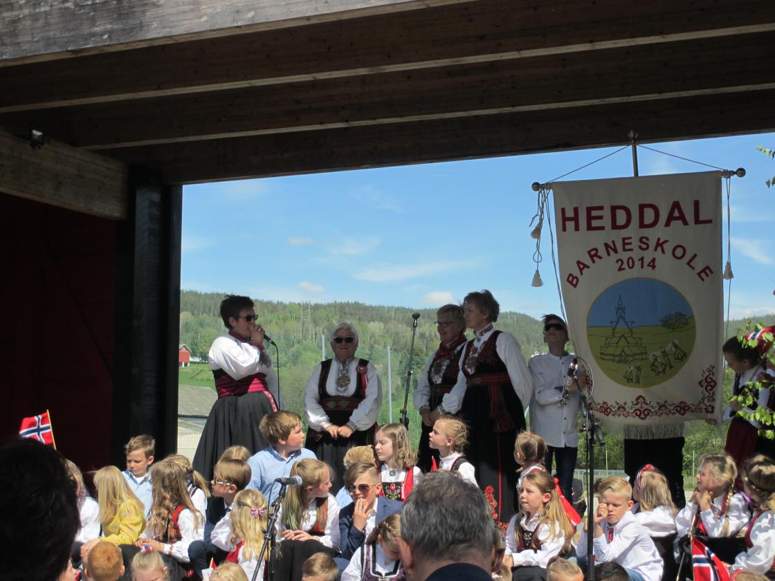 Kyndige hender og kreativitet har vært med på dette, og fana symoliserer Heddal som bygd med tradisjoner og den oppvoksende slekt. Stor jubel på nasjonaldagen, og det blei overrakt stor takk og blomster.