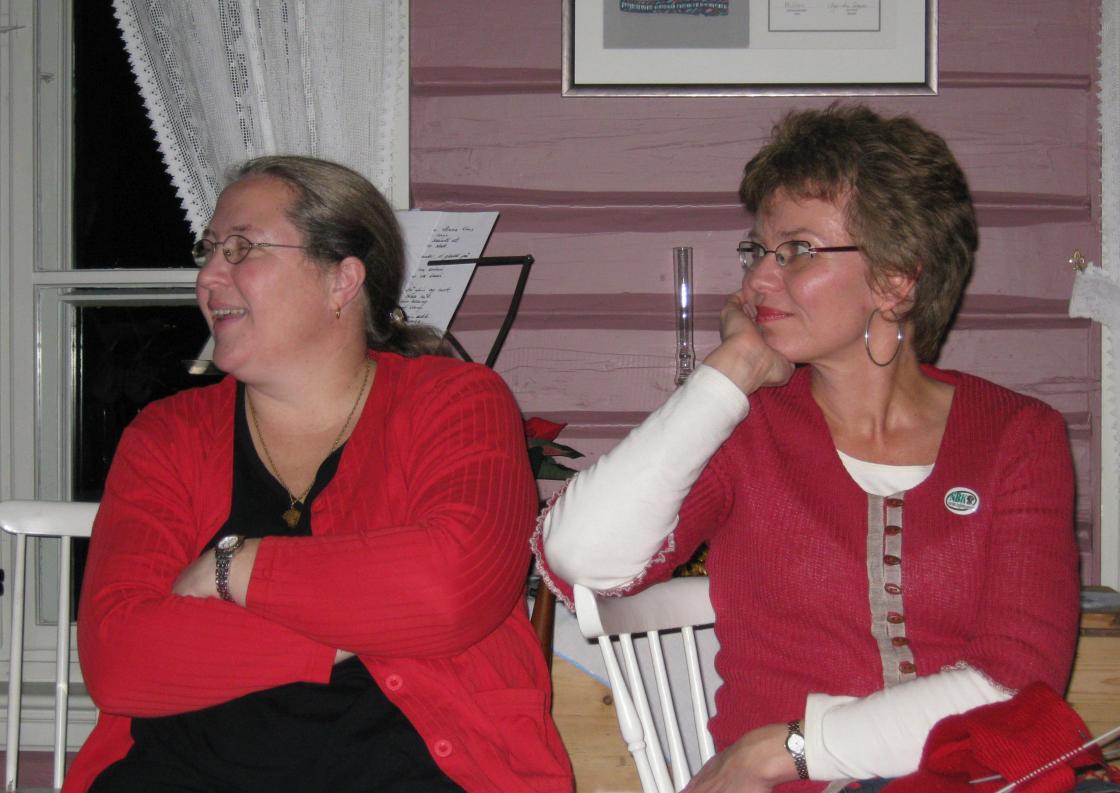 Margunn og Kathrine i rødt