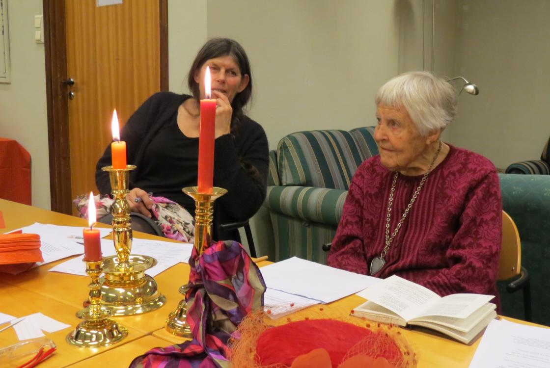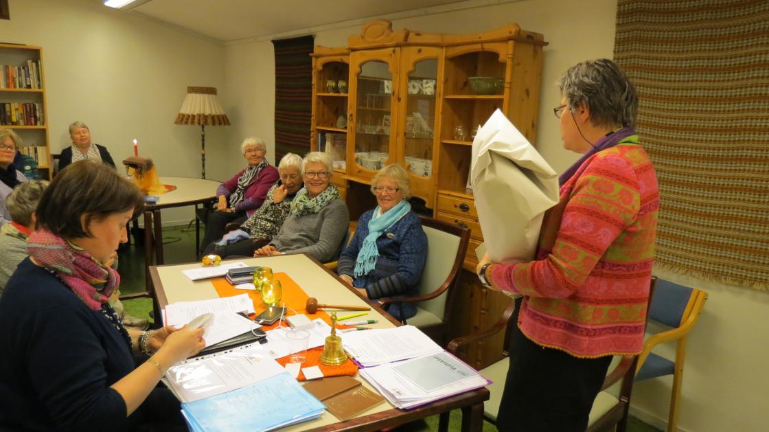Anne Berit Finden tok gjenvalg som leder, så da var en viktig posisjon i styret sikret. Åse Kristine Guthus tok også gjenvalg, så dette så lyst ut. Og da ingen av de gjenværende kandidatene satte seg imot å bli valgt inn, har vi også til neste år et flott, oppegående styre i laget. Da den skriftlige delen av valget var ferdig blei resten som hadde påtatt seg verv for ett eller to år framover, klappet inn, en etter en. Lene Kristin Bråtejordet fikk platte etter mange år i styret, Randi Traet fikk blomster og takk for tia som vara til styret.