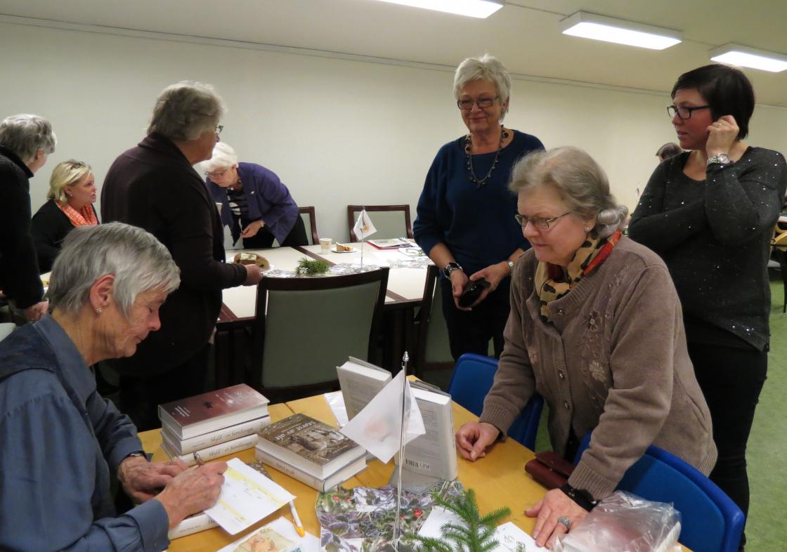 Lillian Skov fortalte om sitt forfatterskap og leste litt fra noen av sine bøker. Det var en jevn strøm av kjøpelystne og bokhaugen minket radikalt i løået av kvelden. En godt fornøyd forfatter kunne si takk, og det kunne også vi - godt fornøyd med en kveld i bøkenes verden