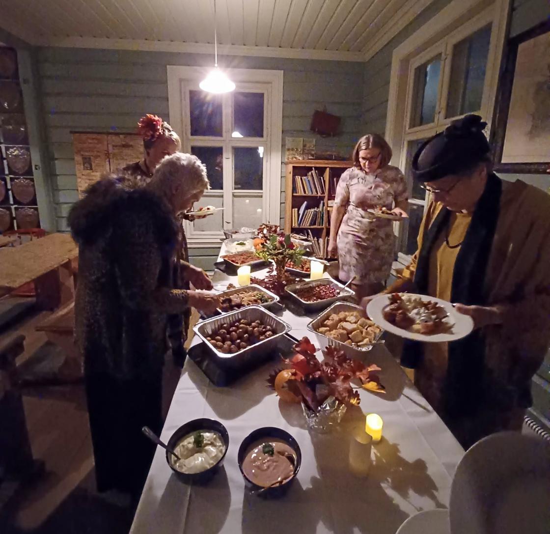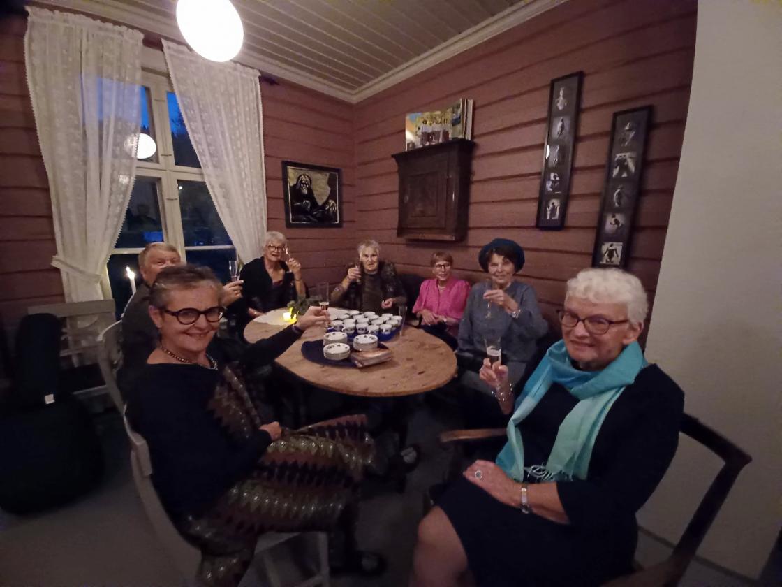 Vi samlet oss, 16 pyntede bygdekvinner til festlig aften, som takk for innsatsen på Høstmarkedet.