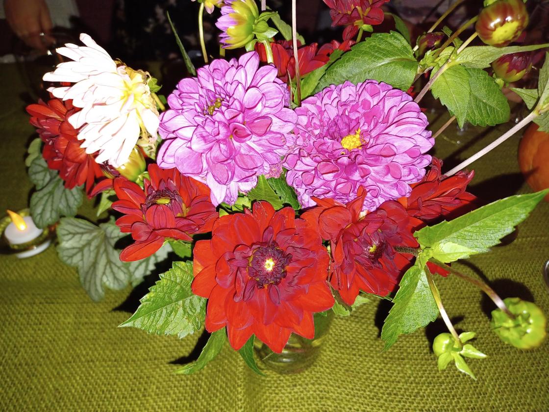 Åse Kristines hage byr på et fyrverkeri av georginer - her ved noen av dem