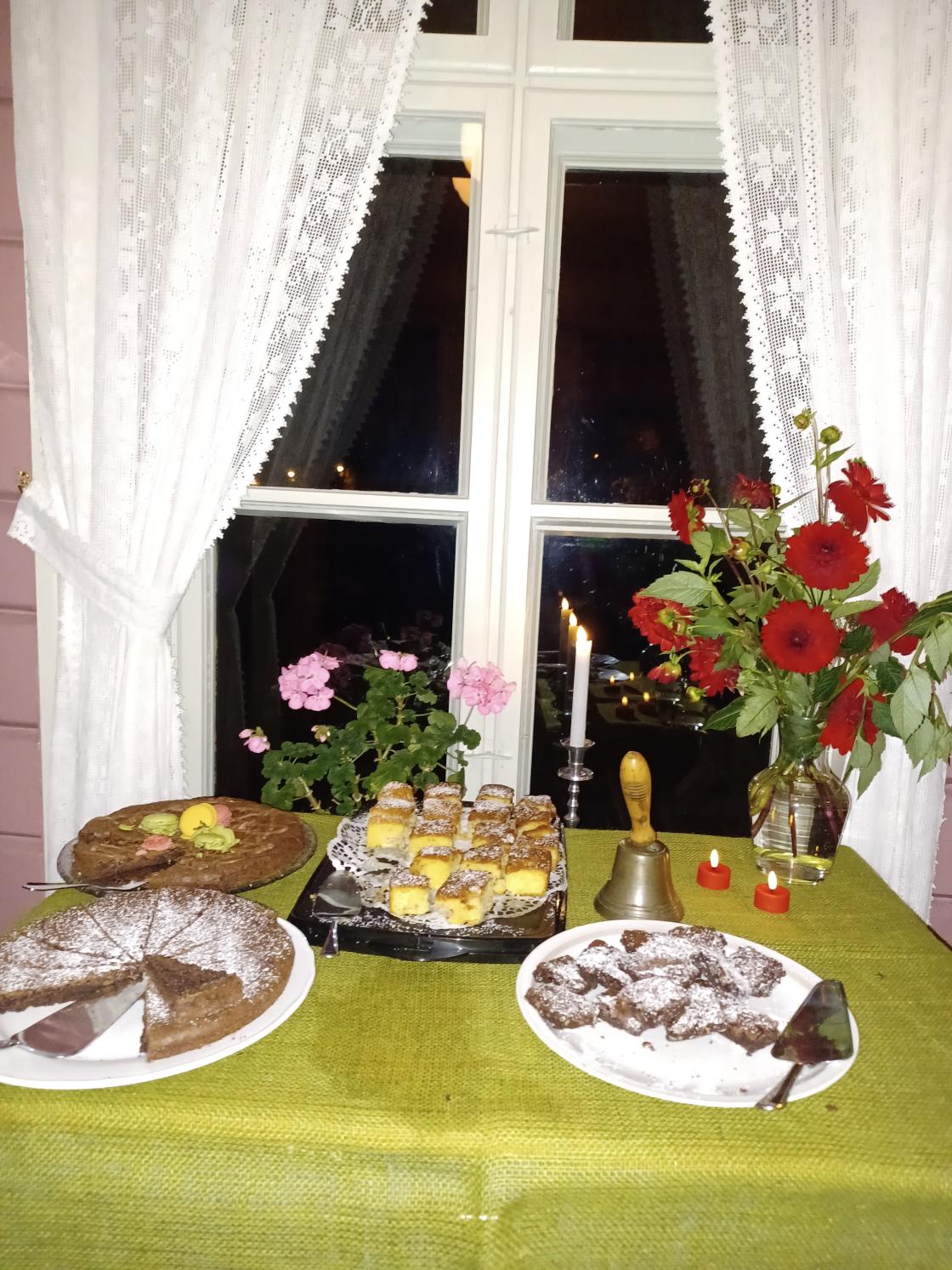 Kaker og kaffe fikk vi også plass til og jammen vanket det ikke litt godt i glasset her også.