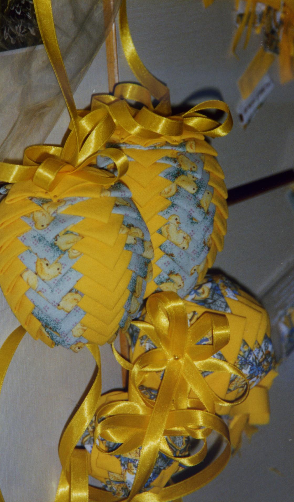 Lekre påskeegg i bretteteknikk med stoffrester vokste fram mellom hendene på kursdeltagerne. En ny måte å skape noe vakkert til påskehøytiden.
