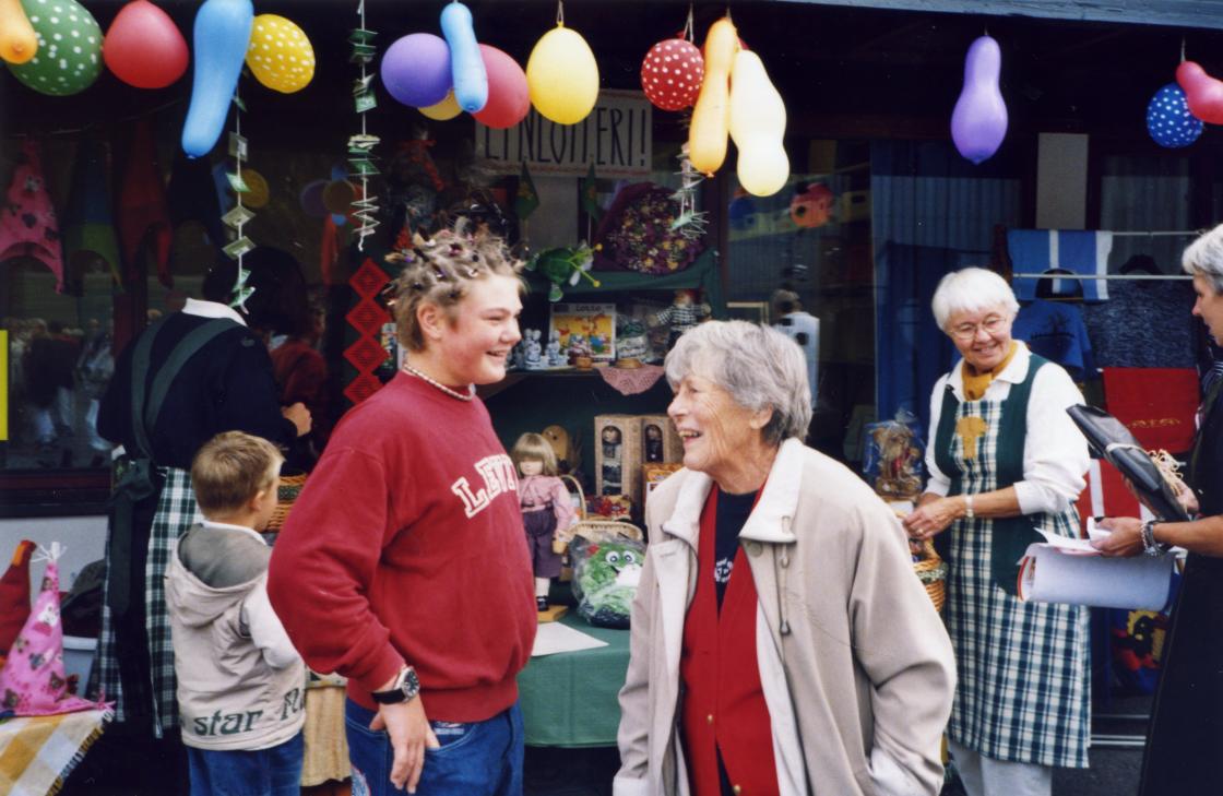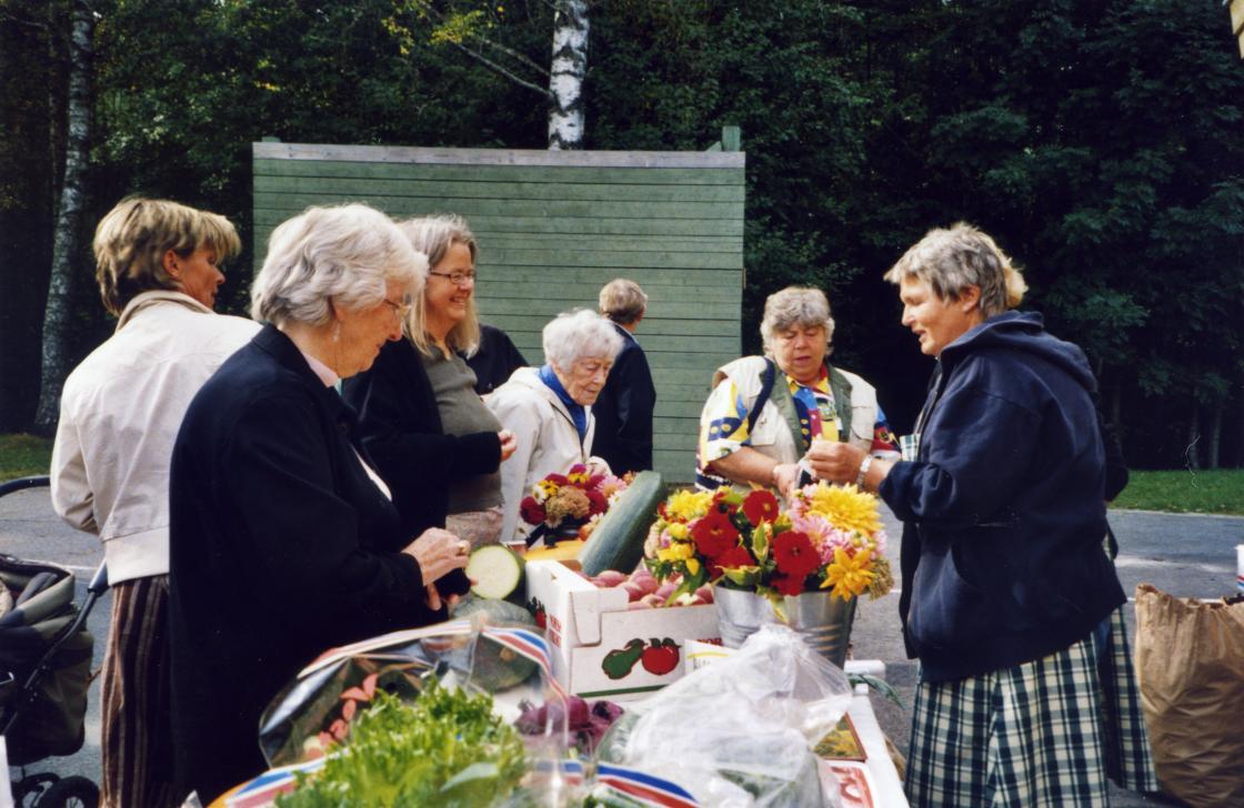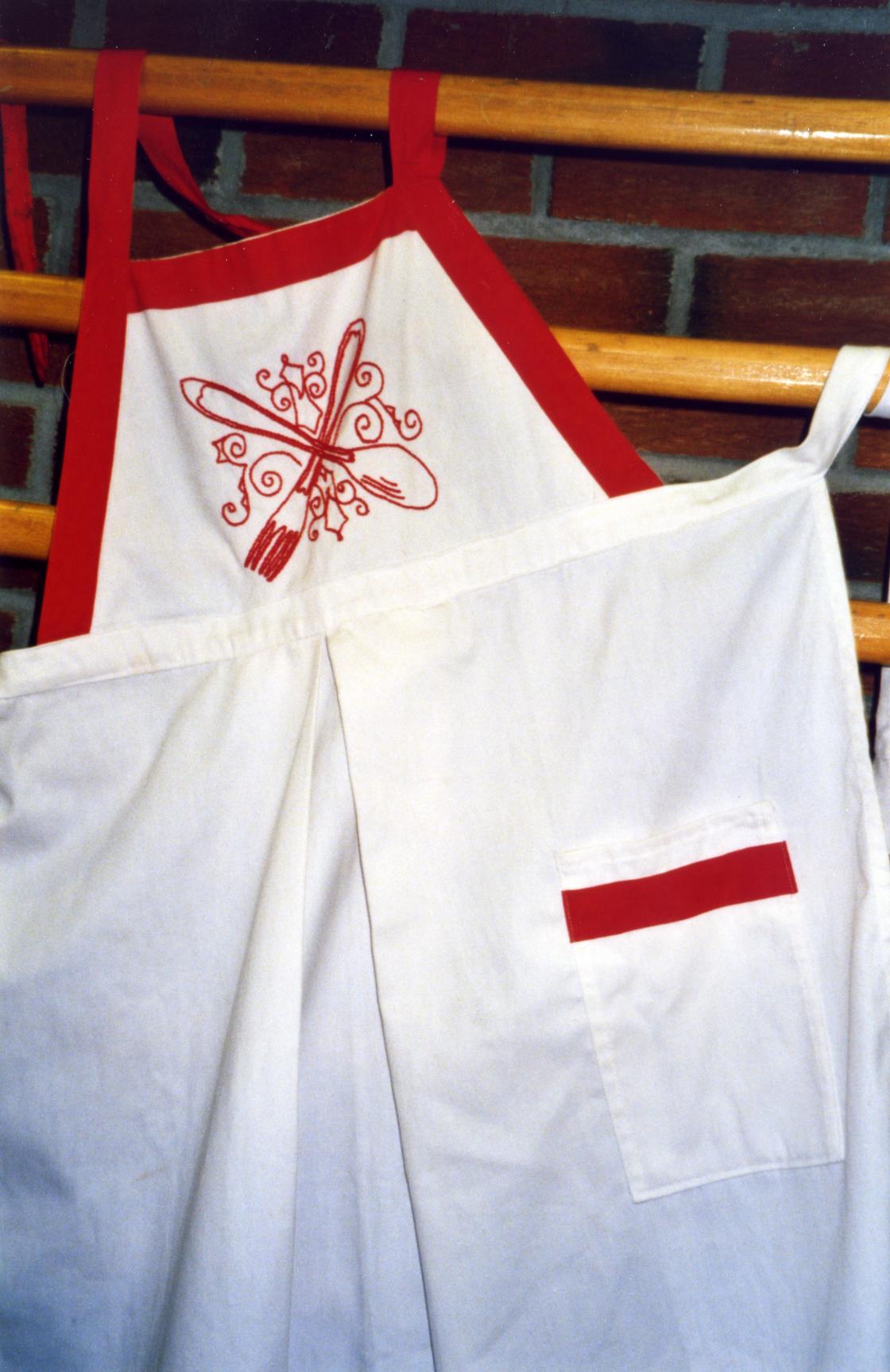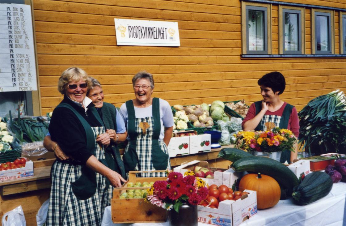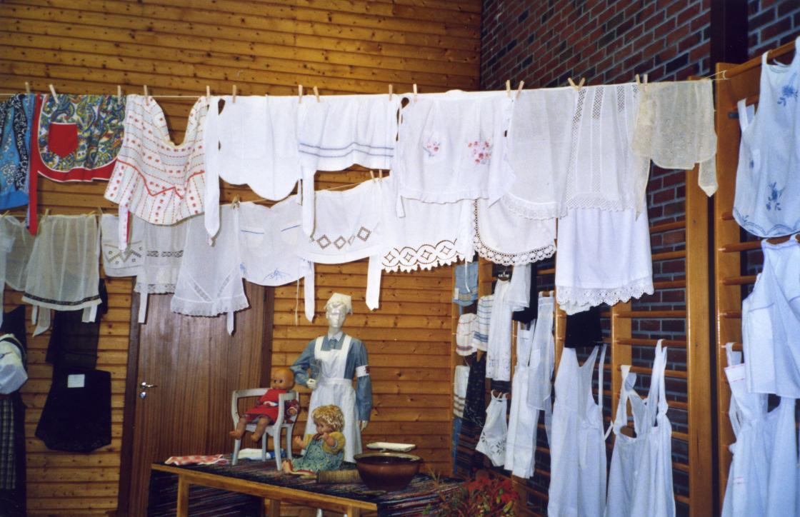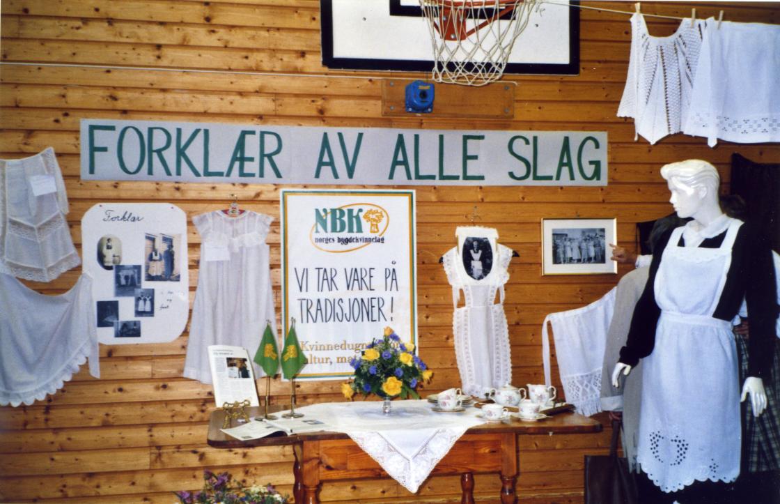 Vi tar vare på tradisjoner - og her var det forklær av alle slag - fra våre formødre flere generasjoner bakover til de vi bruker nå. Gymsalen på Hillestad skole var forklekledd i anledningen høstmarkedet til bygdekvinnene.