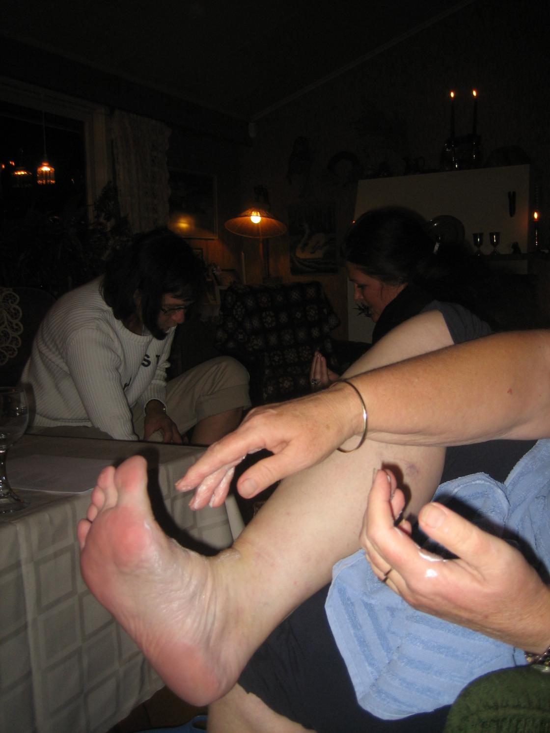 Vi ble jo litt lattermilde mens alle nakne føtter fikk hjelp til å komme i vannbad