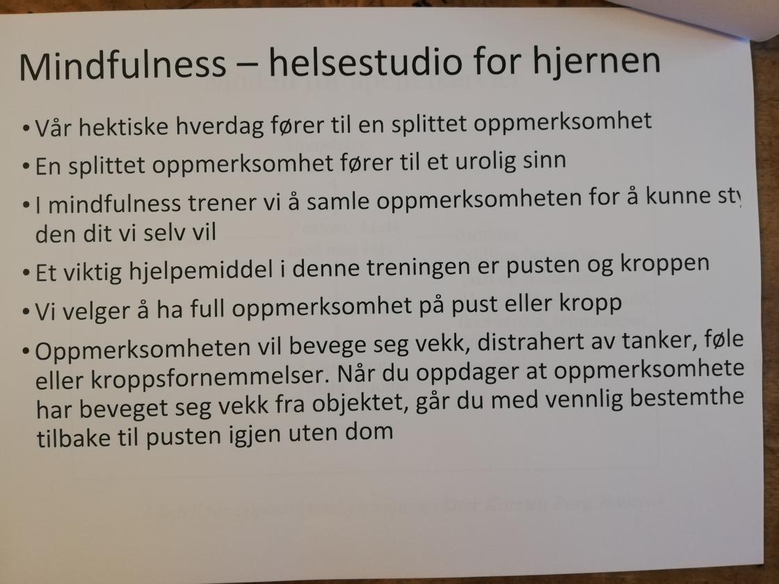 Klarer vi av og til å få igjen roen i de daglige aktivitetene vi gjør, er vi på god vei. Tygge maten og kjenne, virkelig kjenne på hvordan den smaker, se hvordan den ser ut, hvordan den lukter, kanskje til og med kjenne på en takknemlighet for at vi kan spise oss mett. Når doen skal vaskes eller snøen måkes, når pus stryker seg kjælent rundt beina dine - dagens mange gyldne øyeblikk finnes i alt dette.
