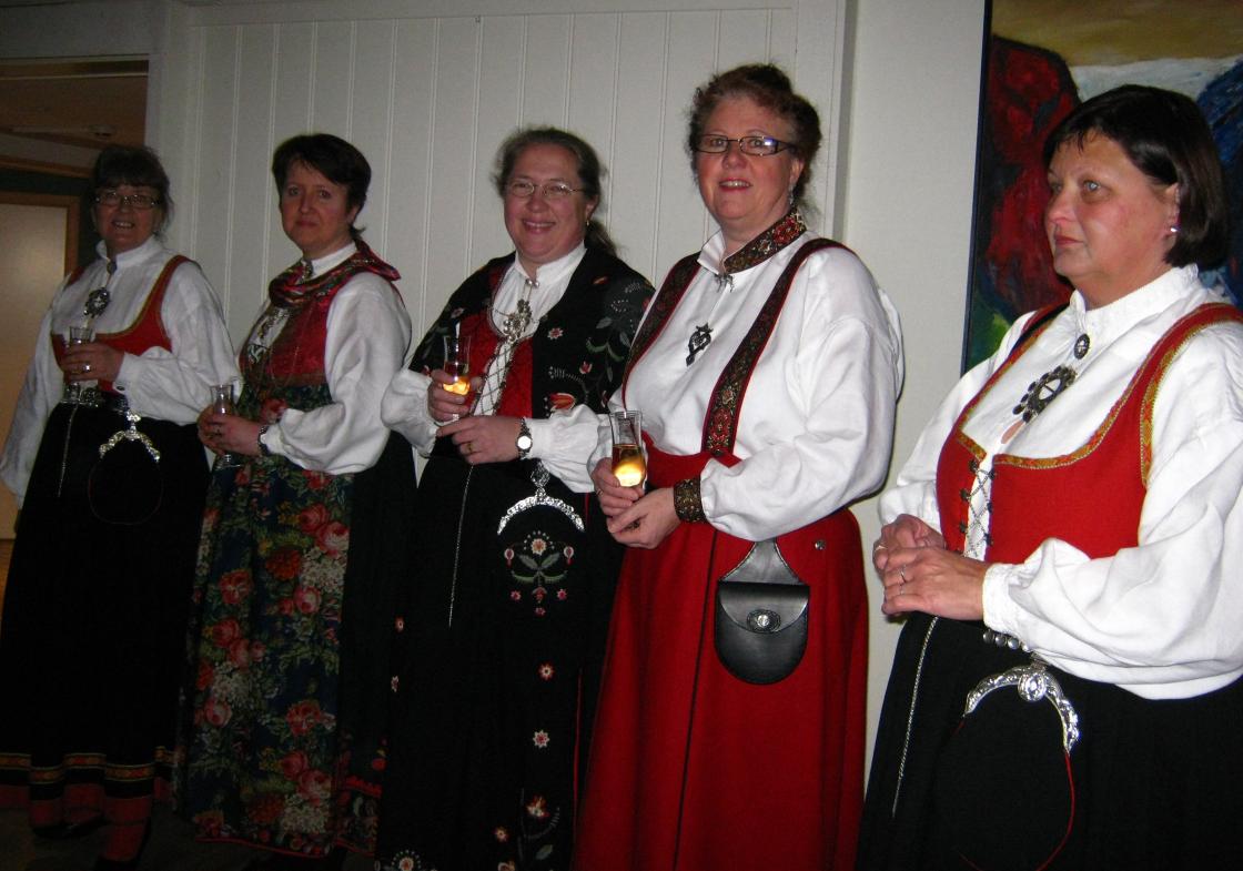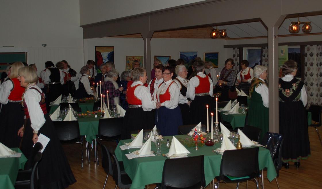 75-årsjubileum med festkledde kvinner i bygdas storstue. Pyntet med grønt fra skogen, sølv fra de mange hjem og tulipaner. Vi hadde innbudt gjester og skulle feire oss sjøl.