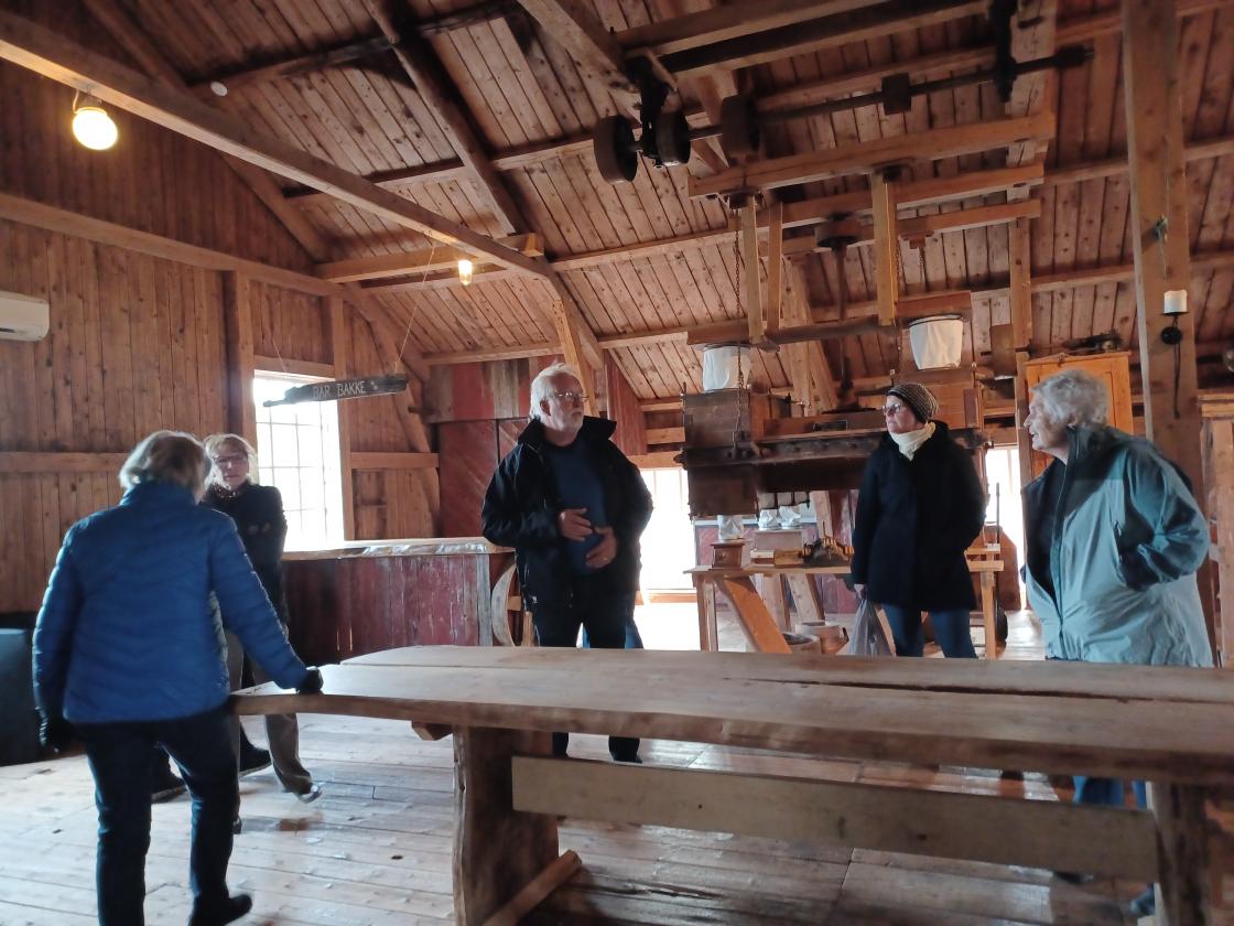En fin vårkveld, med litt sur vind, reiste 12 bygdekvinner til Bakke Mølle, der vi ble møtt av Leif B. Olsen, som viste oss rundt og fortalte om stedet og historien. «Energihistorisk senter», presenterer de seg som, et flott sted, med andedam, selskapslokaler og teknisk museum. Hit kan alle komme å nyte maten sin ved dammen, ta en liten kanotur eller bestille omvisning eller festlokaler, med nyoppusset kjøkken.