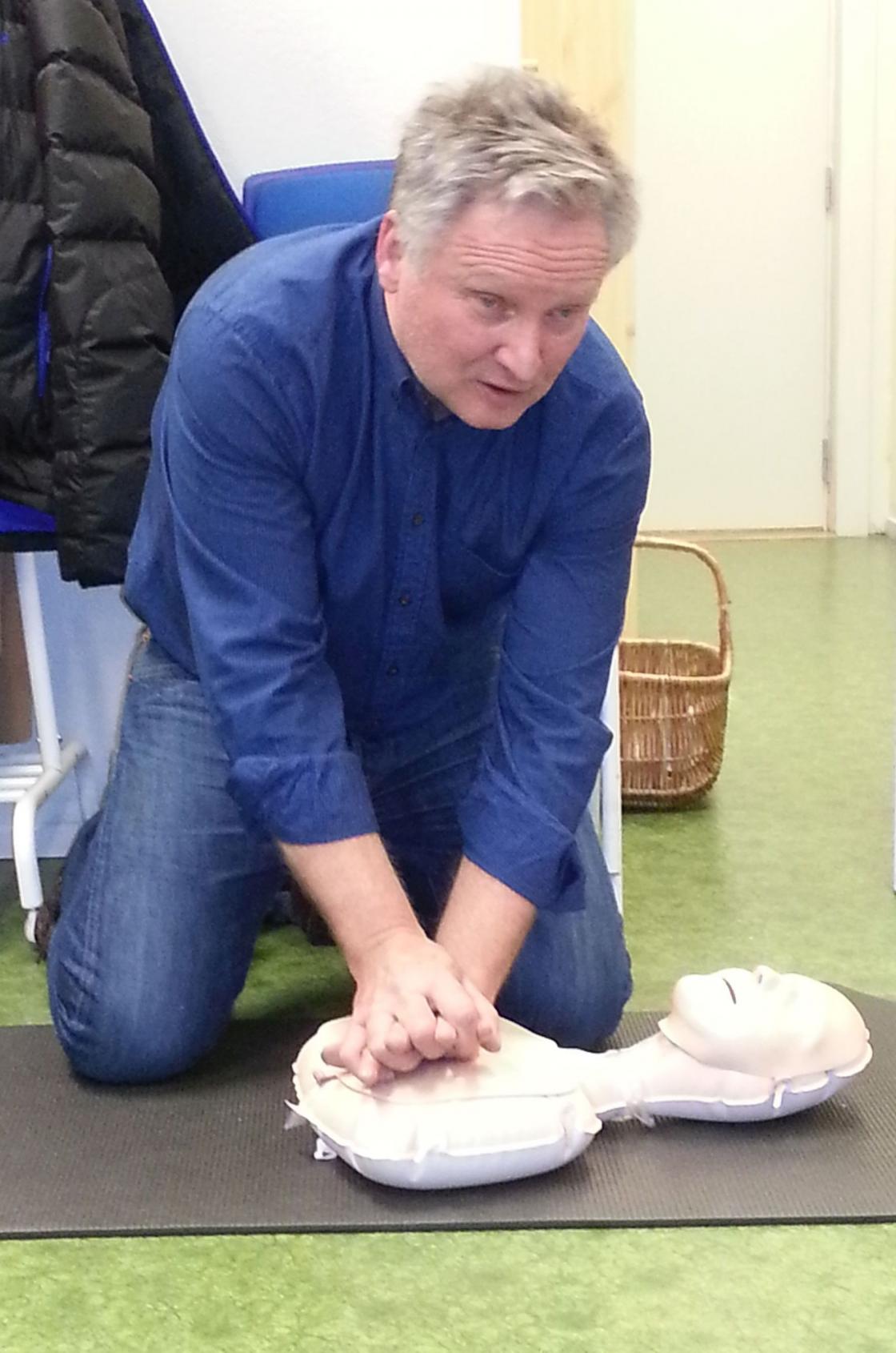 Med Hans Kristian Løken som stødig formidler fikk flere prøve seg på hjerte-lungeredning etter en teoretisk innføring.