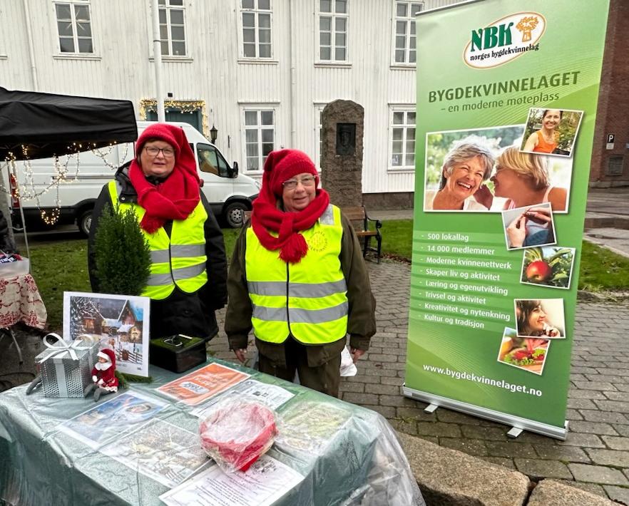 I glade farger - signalgule vester og røde hjemmestrikkede langluer på toppen hadde bygdekvinnene fra Hillestad stand på julemarkedet i Holmestrand.