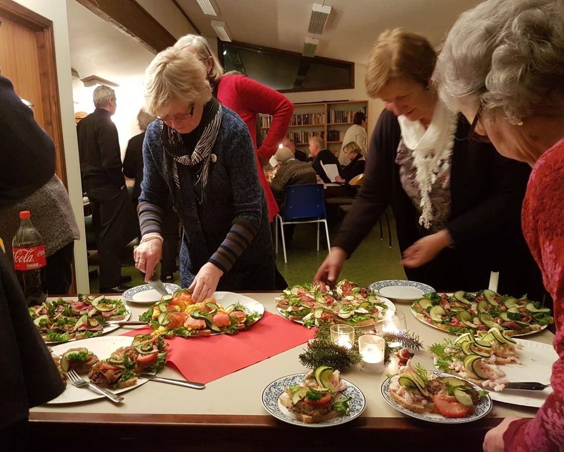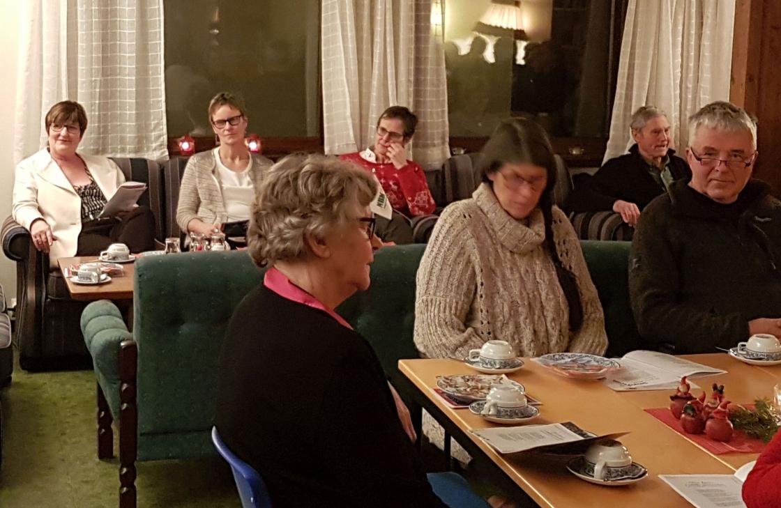 Hyggelig at Bygdestua var full denne kvelden og med koselig pyntede bord, høye snitter og bløtkake fra Torunn ble også både øye og mage tilfreds.