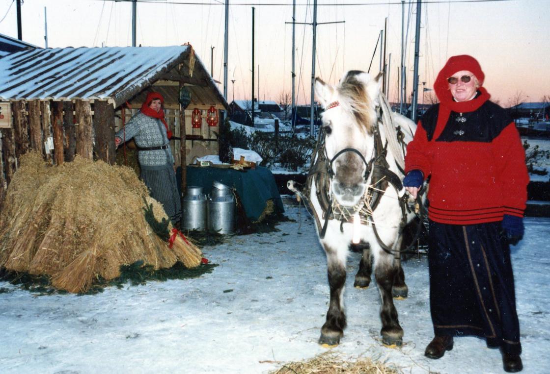 Sentrumsnissen i Holmestrand hadde invitert bygdekvinnelaget blant mange andre til å lage stemning i byen under fjellet før jul. Og vi betemte oss for å si ja. Fikk laget en honkledd "stall" som vi kunne ha varene i og kledde oss godt. Gampen tok vi også med - og langluer og hjemmestrikka kofter var en selvfølge.