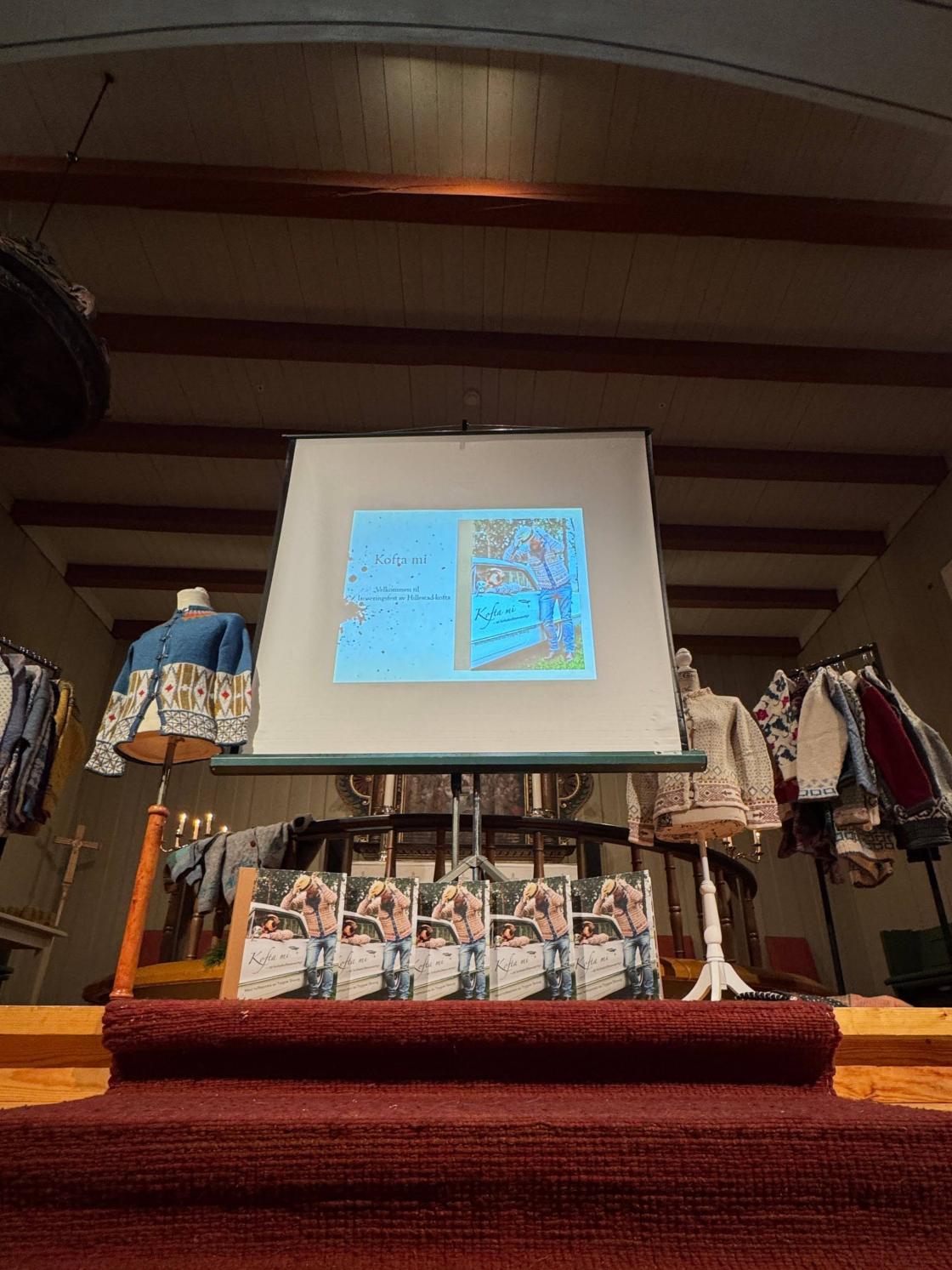 - Hillestad kirkekofte så dagens lys tirsdag 12.11.24 i Hillestad kirke - mens det ble strikket og humret og summet i benkeradene.