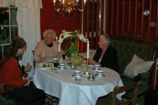 Spesiell god kaffe og nydelig kokoskake med svisker og krem avsluttet et varmende og hyggelig måltid.