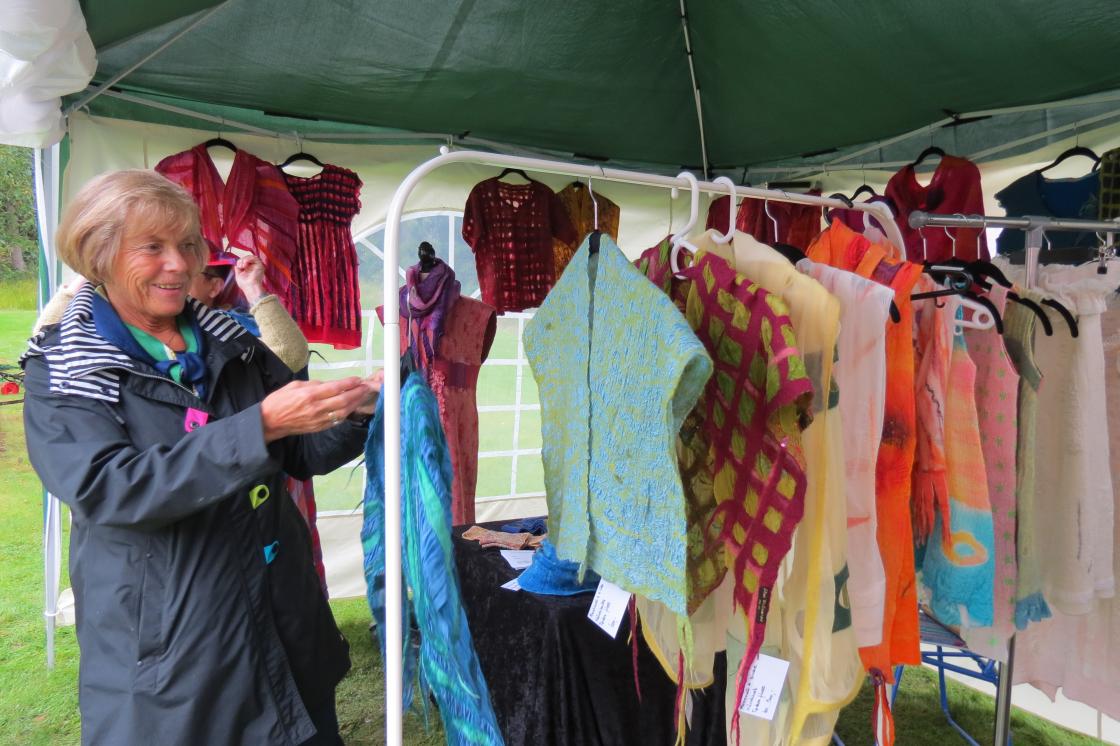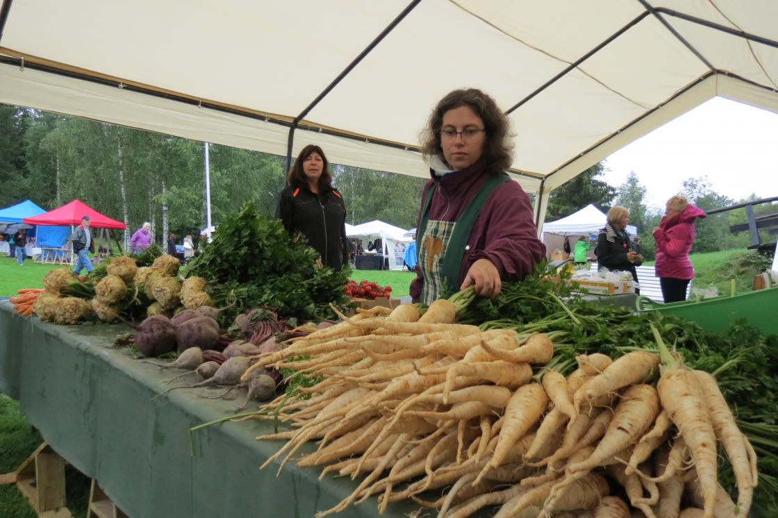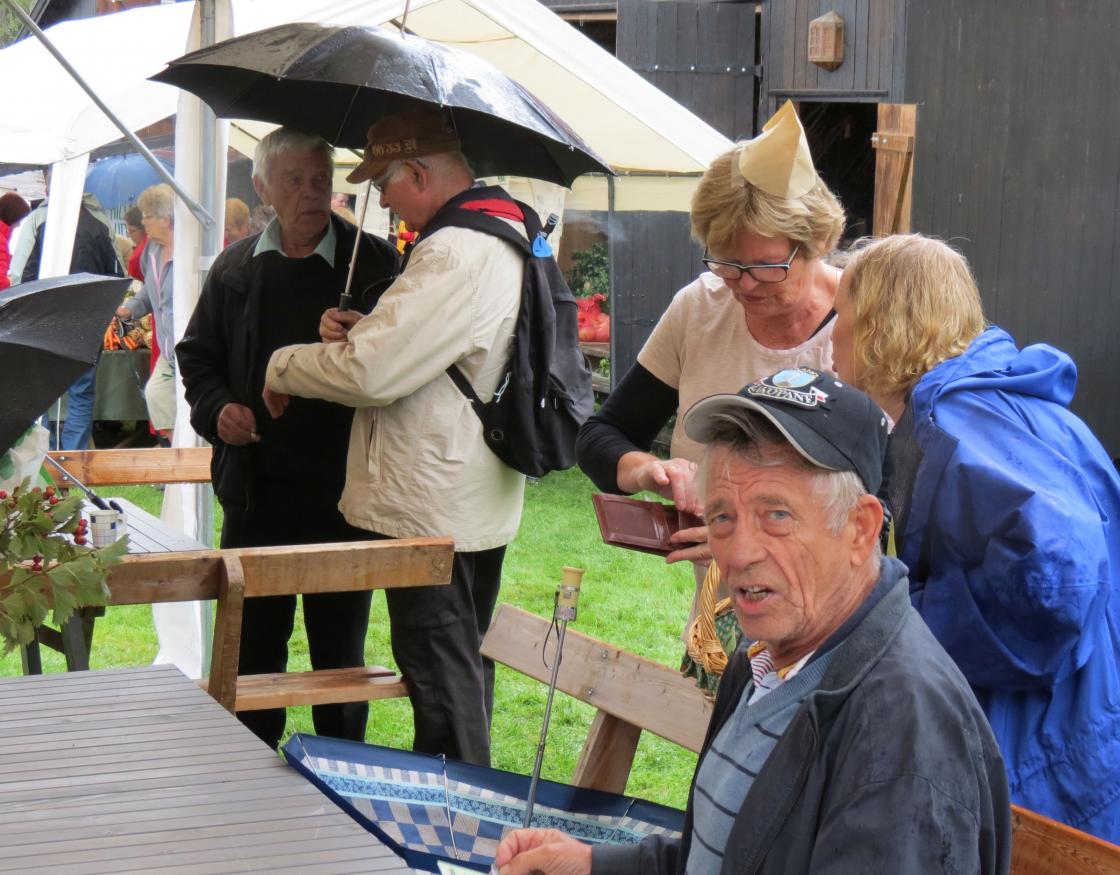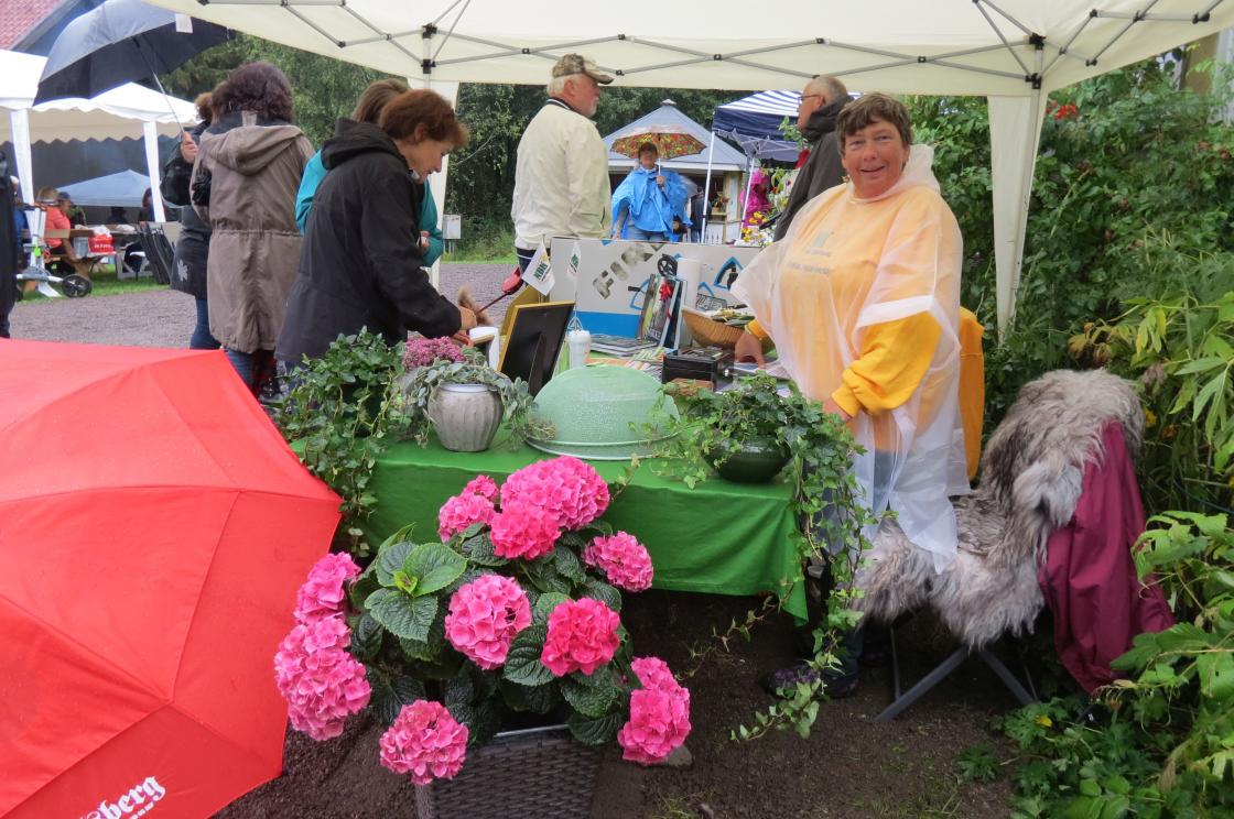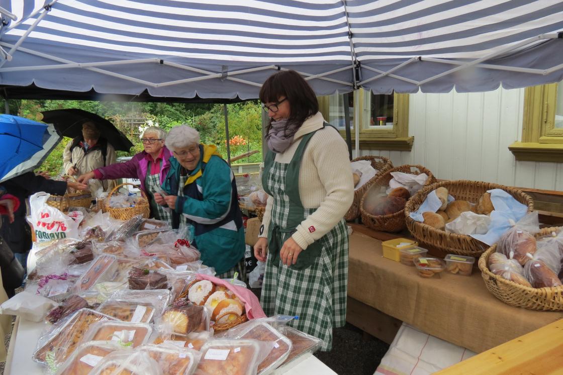 Så også i år - med tema Kaffe og med bugnende grønnsakstand og bakestand, rømmegrøt og boller, utstillere i farverike telt og paraplyer i alle regnbuens farver. Ja, for det regnet - Men det satte såvisst ikke noe demper på smilene og handlegleden. Publikum tukket seg innunder det store teltet hvor langbord og benker sto tett i tett - tok utflukter ut til bodene og kom tilbake for å varme seg på en kaffe kopp. Temautstilling med kaffeposeskjørt etter eget design for de medvirkende bygdekvinner på den standen, Aluminiumsmuseet i Holmestrand med et utvalg kaffekanner fra deres produksjon, spåkjerring og LilleHolmestrand med markedskaffe samt en utstilling av kaffekverner og kaffebrennere, kaffekjeler og tilbud om kurs i å lage kaffegrutsåpe!