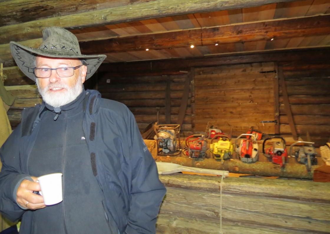 i Titteskapet var det utstilt motorsager fra de eldre modeller fram til i dag