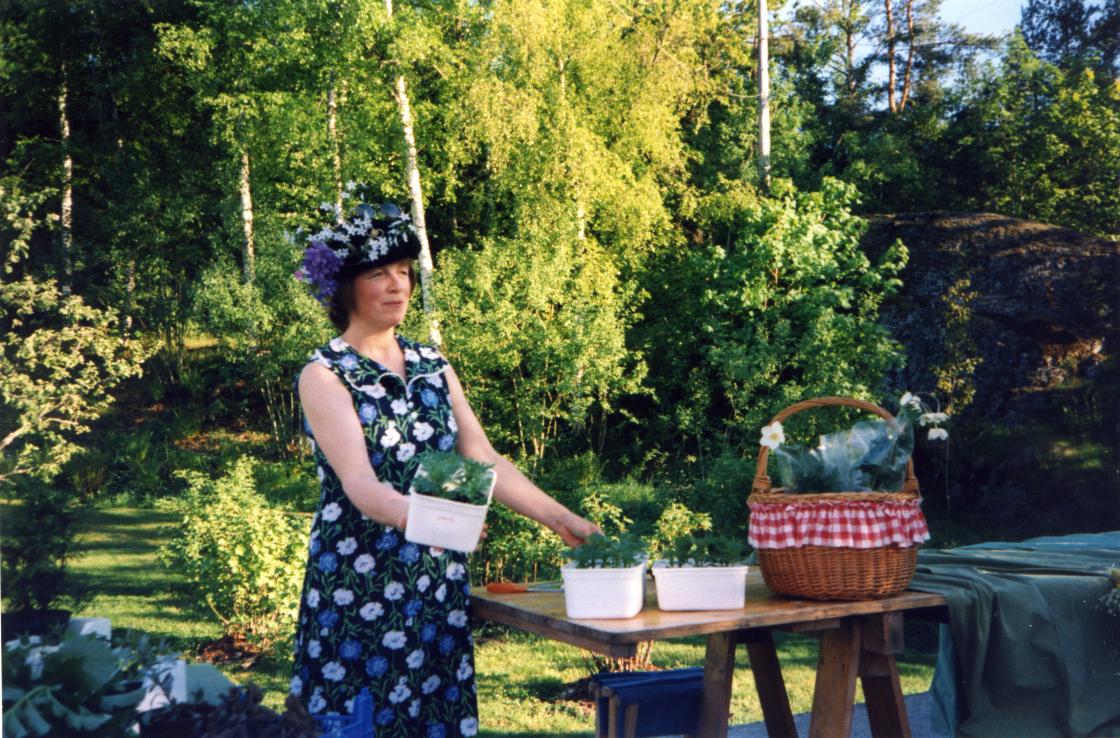 Planteauksjonen hos Marianne Løchen kom med oppfordringen: kom med blomsterprydet hode!