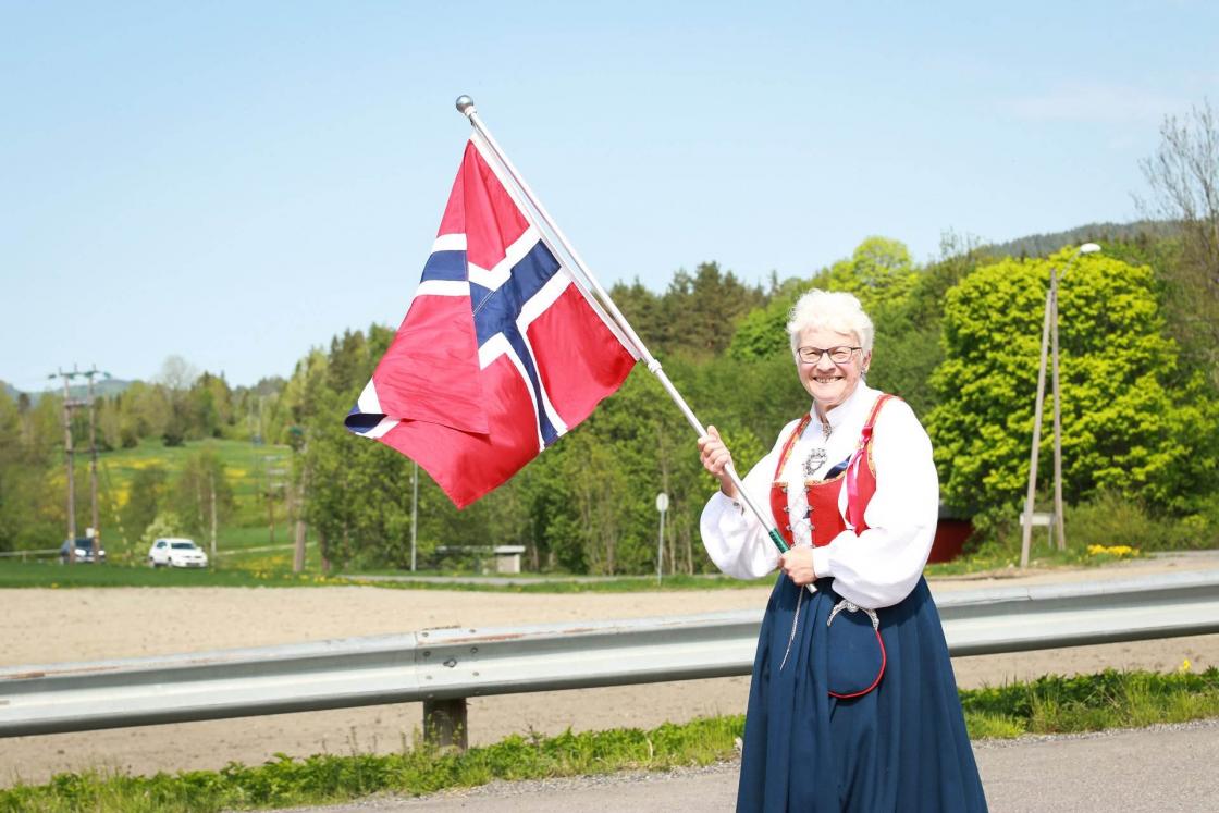 Bygdekvinner utgjorde det meste av flaggborgen - her Turid Næss