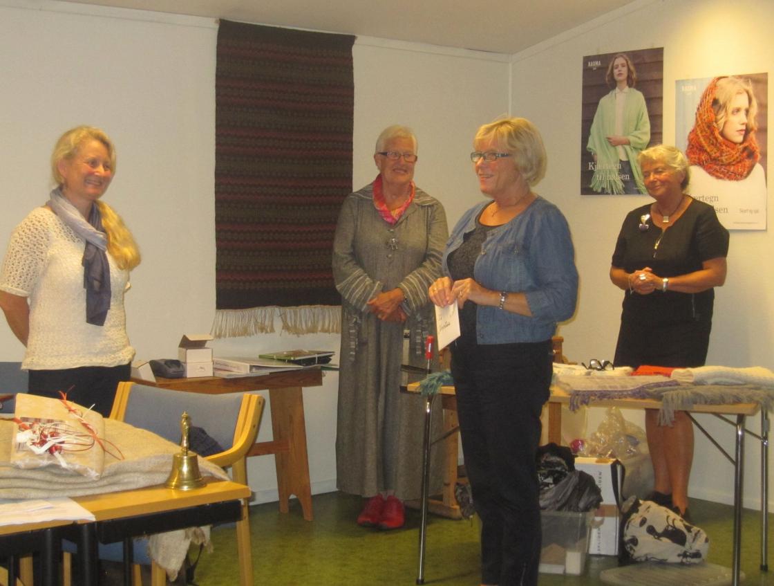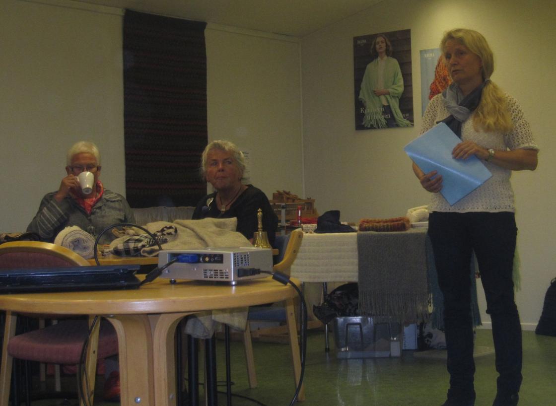 Ingebjørg Vaagen kom og holdt foredrag om veving som kvinnehåndverk og om tradisjonelt materialbruk og Nora-Marie Sogn Wiik fortalte om lekre skjerf og sjal hentet fra det nye vevheftet "Kjærtegn til halsen".