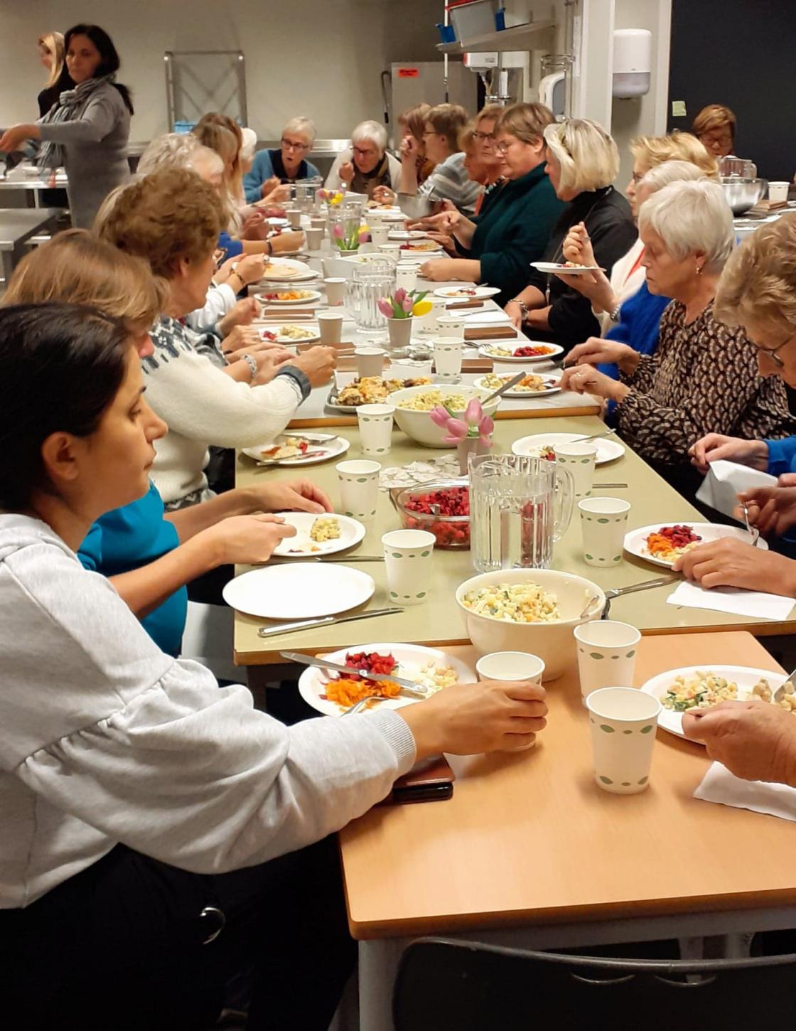 Torsdag 20. oktober inviterte vi til matkveld med mat frå Ukrain. Mange nysgjerrige damer fant veien til Hjelmeland sin ungdomsskule for å få muligheten til å smake på mat frå Ukrain.