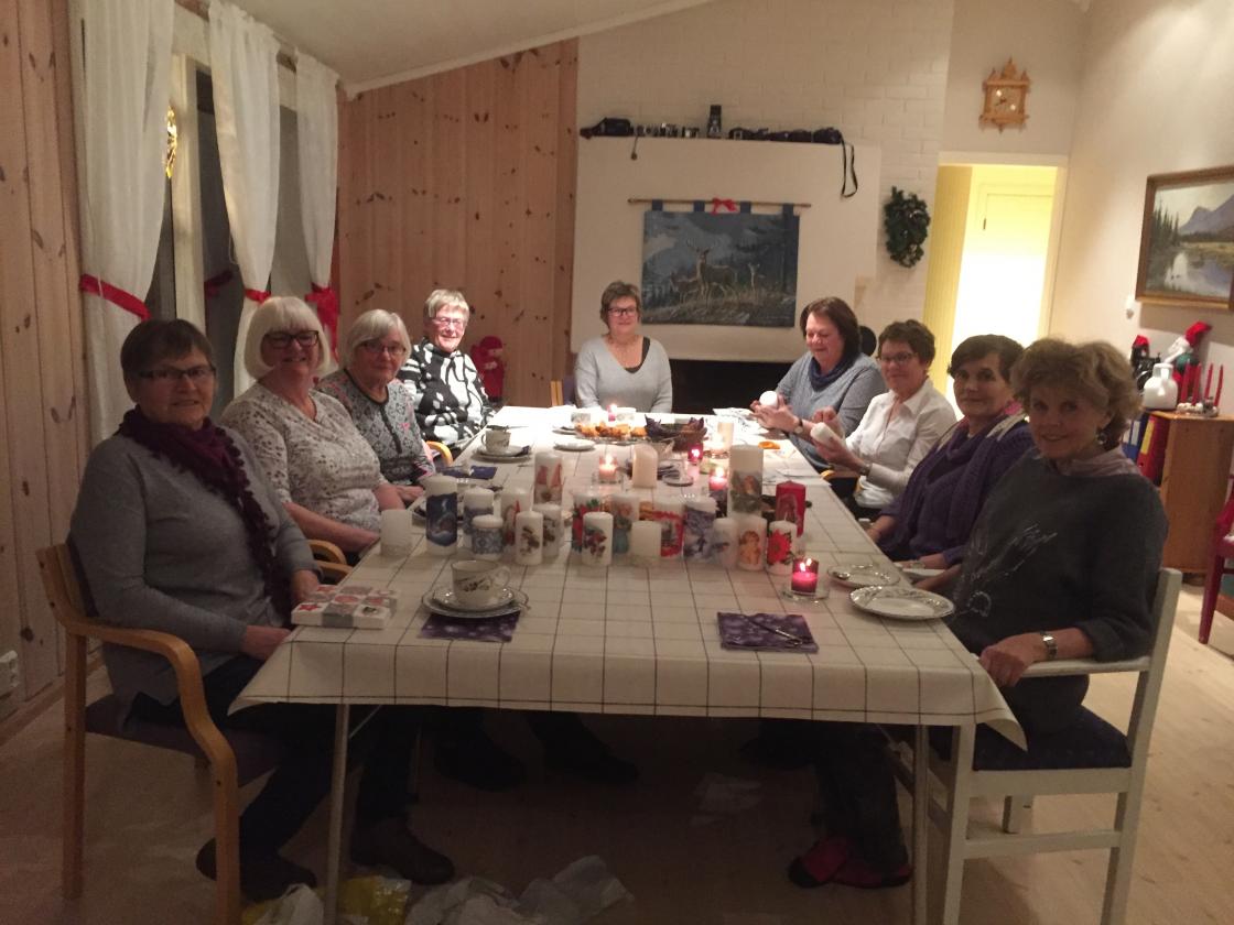Vi lærte ein spesiell teknikk med serviett-dekor. Dette var riktig så triveleg! Kvelden vart avslutta med kaffi og påsmurt julekake.