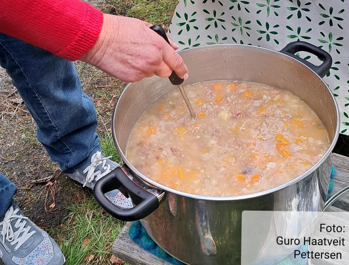 Som vanlig møttes vi i gapahuken ved Helgen skole. Onsdag 14.september var vi samla rundt bålpanna, og deilig grønnsaksuppe fra årets avling ble servert.
