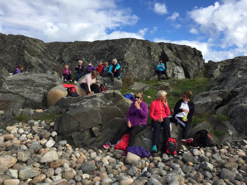 Vi kjørte til Nevlunghavn og parkerte bilene. Turen gikk langs kyststien, forbi Oddane sand til Mølen, videre til Omlistranda, og samme veien tilbake. Turen ble på ca 12 km. Underveis hadde vi kafferast på Mølen og ved Omlistranda.