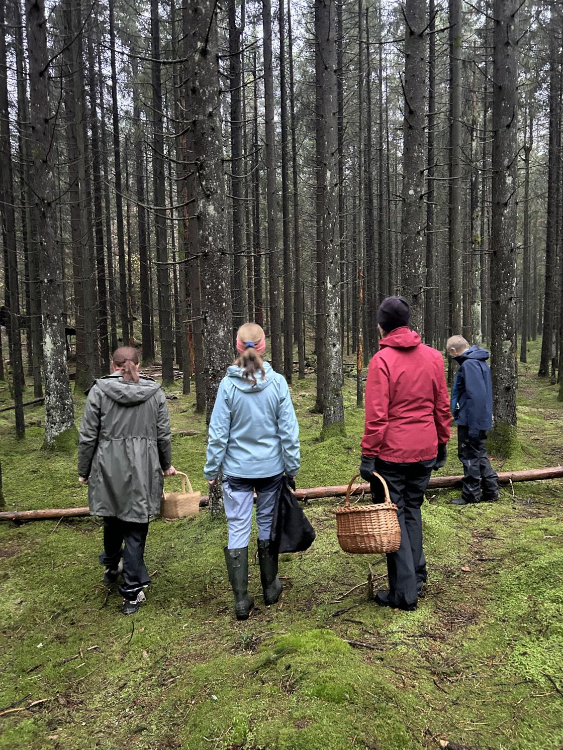 Vi var heldige og fikk oppholdsvær – og den trolske skogen med sin myke mosebunn syntes vi alle var veldig flott 🍃
