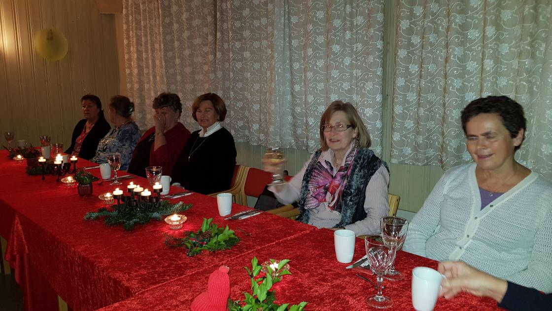 Første mandag i desember samlet vi oss til julemiddag på Fredheim. Tradisjonene tro var det ribbe, kjøttkaker, pølse, surkål og poteter. Veldig godt, maten var levert av Spar Kvelde. Til dessert hadde vi riskrem som Gerd Synnøve Utklev hadde laget, også den smakte fortreffelig. Gerd Synnøve fikk også en blomst som takk for alt hun gjør på skolen i bygda vår. Har i høst lært ungene i 3 og 4 klasse å strikke. Med seg har hun hatt Jorunn Hogstad og Kirsten Landsverk.