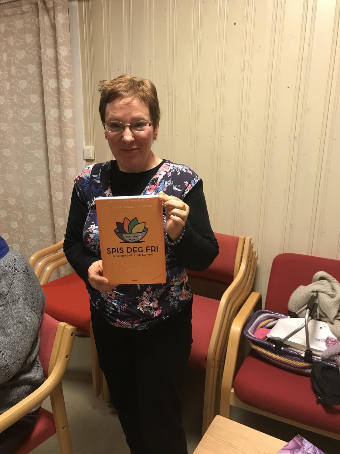 Å være avhengig vil si å ha et sykelig forhold til enkelte stoffer. Har man blitt avhengig, så er man det hele livet og må selv ta noen aktive grep. Sukkeravhengighet kan være like vanskelig å takle som å være avhengig av heroin. Hjernen trenger stadig større mengder av sukker for å oppnå samme kick som tidligere. Det tar bare en uke for kroppen å venne seg til større mengde, for deretter å ønske seg mer. Konsekvensen er at alt for mange får følgeplager, fordi de lar hjernen styre sier Doris Hildenbrand. Mat må vi ha og vi må spise for å opprettholde kroppens energi og forbrenning. Sjokolade og godteri trenger vi derimot ikke og avhengighet er i ytterste konsekvens dødelig. Hun viser til at det finnes løsninger og en måte å endre vaner på, er å følge metoden «spis deg fri». Å spise seg fri er å følge visse prinsipper og planlegge måltidene. I dag er maten så mettet av næring at det kan føre til fett i blodårene. Det er påvist økt forekomst av diabetes og hjerneslag hos barn som følge av deres matvaner. Næringen i dagens mat gir ikke signaler om at vi er mette, men gir signaler om at vi ønsker mer og mer. Helse er atskillig viktigere enn utseendet og at kvinner legger på seg i overgangsalderen er bare en myte. Har man fått lagt på seg, er det ikke nødvendig å drasse på overflødige kilo resten av livet. Da må du må ta noen aktive valg når det gjelder hva du skal spise. Du må også være modig nok til å svømme mot strømmen, ved å ta med deg din egen mat og holde på prinsippene. Et viktig budskap er at overvekt ikke handler om å være lat, det skal man legge fra seg. Det ble også sagt, at det er lettere å ta aktive og riktige valg når man vet at det handler om avhengighet og hjernens signaler. Moderasjon er atskillig vanskeligere å takle enn avholdenhet. Så derfor skal du planlegge hva du skal spise til faste tider og husk at kroppen trenger fett. Prøv å unngå billige planteoljer, men kjøp oljer med god kvalitet. Lær deg måltidenes sammensetning og vei maten, for å sikre at kroppen får nok mat og næring for å holde i gang god forbrenning. Følges den oppsatte planen fører det til rask vektnedgang. Kvinner må bli flinkere til å ta vare på seg selv og ikke hele tiden ivareta alle andre. Lev livet godt og lær deg selv til spise igjen, på en måte som kroppen har det bedre med.