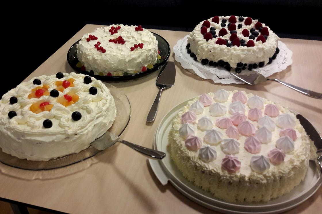 Signe Lise og Margareth hadde førebudd ein aktivitet med å laga collage. Etter maten fekk damene prøva seg. Dei klipte, reiv og limte, og skapte det eine kunstverket etter det andre. Aktiviteten var stor og praten gjekk livleg rundt borda. Innimellom all aktiviteten fekk me og tid til å drikka kaffi og eta blautkaker.