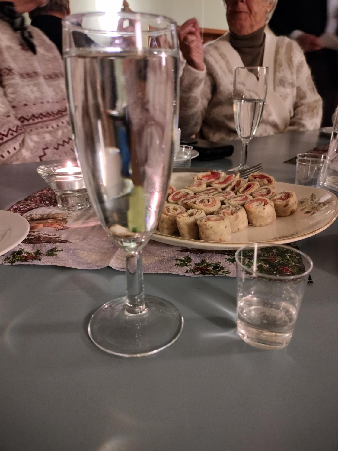 Som følge til de edle dråper ble det servert deilige lefseruller med sylte og laks, og kveldens vertinner fristet oss med saftige kaker og kaffe til dessert.