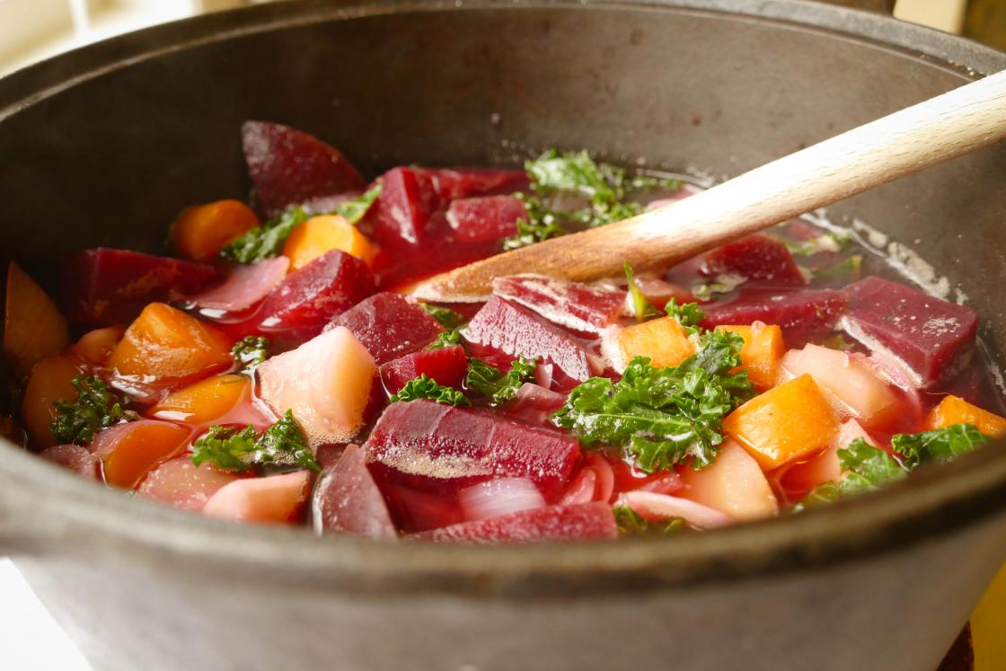 Vi deler ut 120 poser med grønnsaker og oppskrift av grønnsaksuppe.Oppskriften er utarbeidet av mesterkokken Harald Osa.