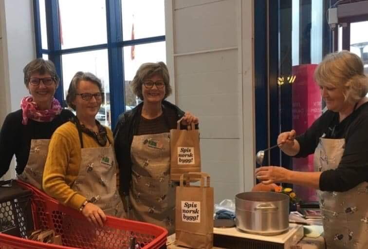 Kråkstad Bygdekvinnelag arrangerte en meget vellykket aksjon for bygg 16.10.18.Vi møtte bare velvilje fra Extra Ski.Der sto vi på lageret og pakket poser. Vi rigget til en fin stand ved inngangspartiet.To av styrets damer hadde laget gammeldags søtsuppe av byggryn.Det ble delt ut smaksprøver til stor begeistring. I posene vi delte ut med byggryn puttet vi også vår vervebrosjyre.Bare glade mennesker å se!!!