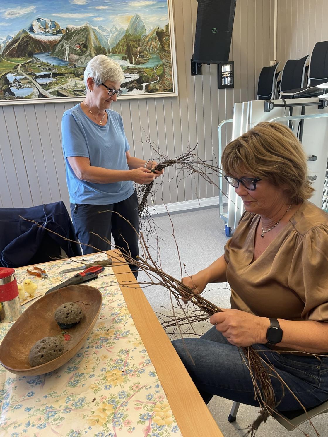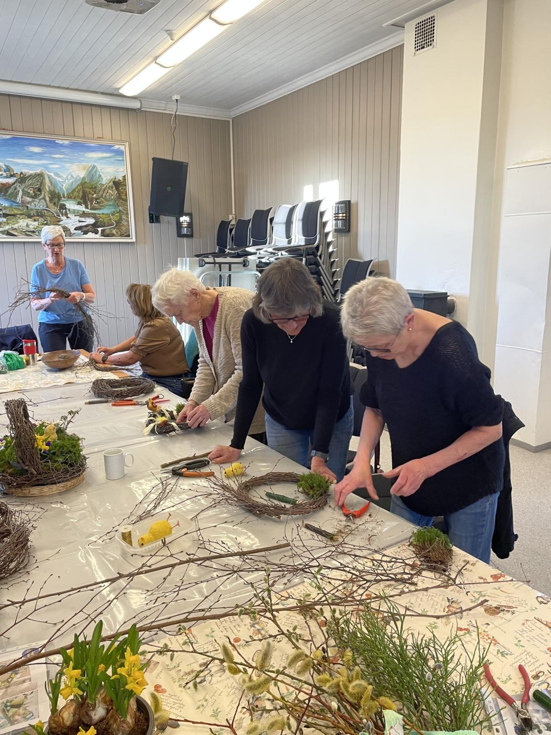 Onsdag 9.april hadde 14 damer møtt opp på Bjerke skole for å lage påskekranser, med Torhild Solberg og Tone Glemmestad, som instruktører. Laget hadde skaffet både bjerkeris og pynt. Det ble en koselig kveld, hvor det ble jobbet med liv og lyst.