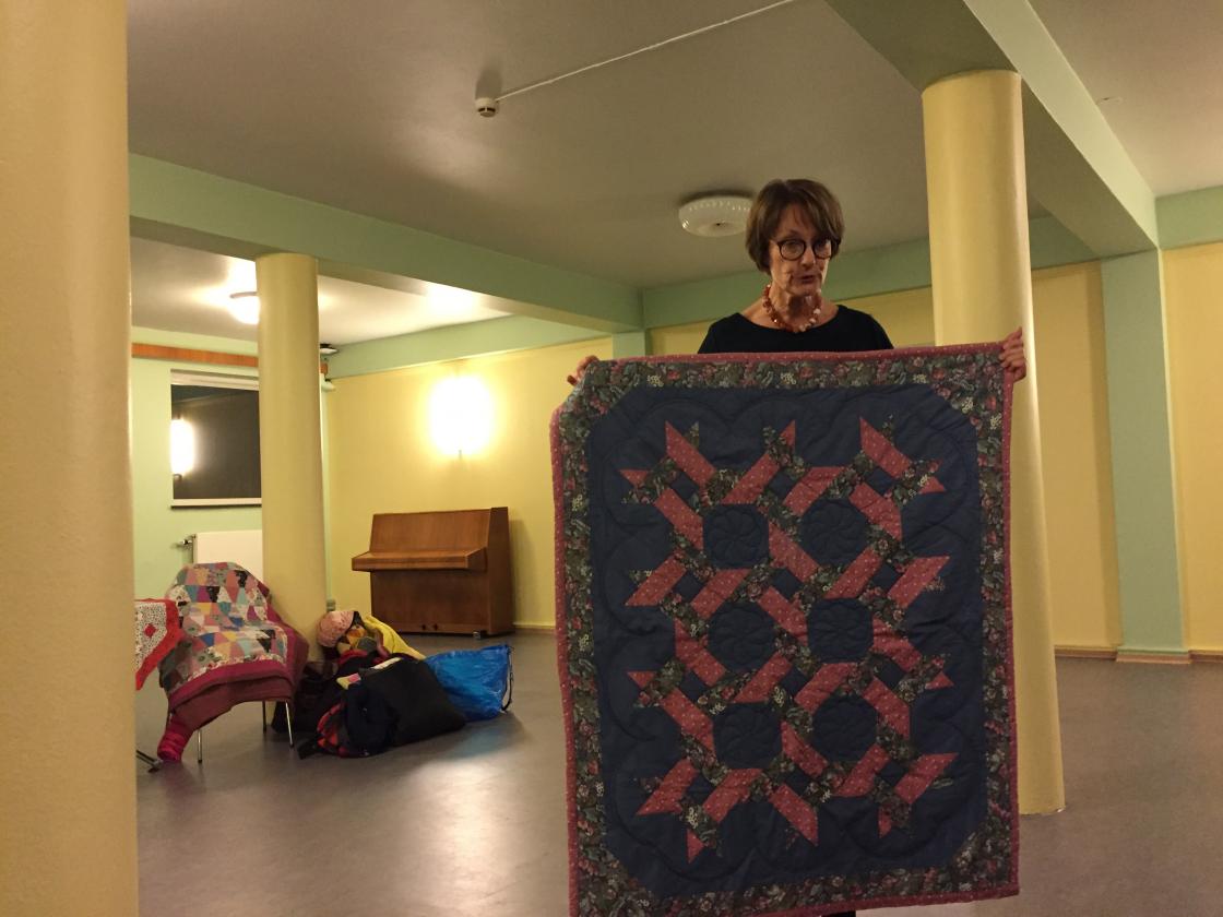 Hun holdt et flott foredrag om alle sine syarbeider i 30 år. De som kom på temakvelden lot seg virkelig imponere. Mange av hennes arbeider har en fortelling.Spesielt til alle hennes kjære.