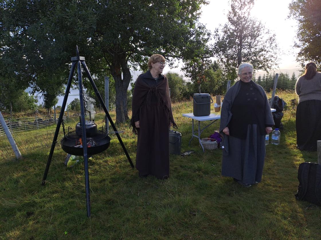 De oppmøtte koste seg med grønnsaksuppe kokt på lokale råvarer, klappakaker og bålkaffe.