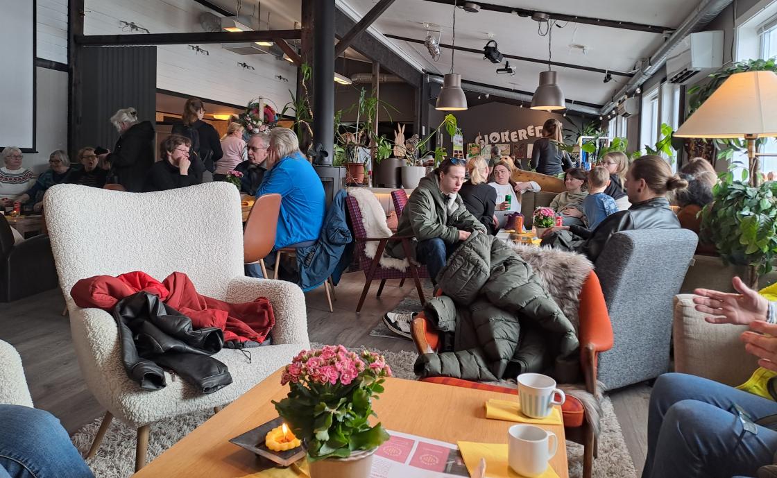 Lørdag 5.april var det tid for påskemarked på Borkenes. Det var salgsboder både på Gjøreredet og i Kvæfjordhallen. Bygdekvinnelaget hadde kafeutsalg på Gjøreredet. Masse folk, og kaker, rundstykker og kaffe gikk unna. Vi prøvde oss også på bruktboksalg til inntekt for Flyktningehjelpa, men det fenget ikke like godt.