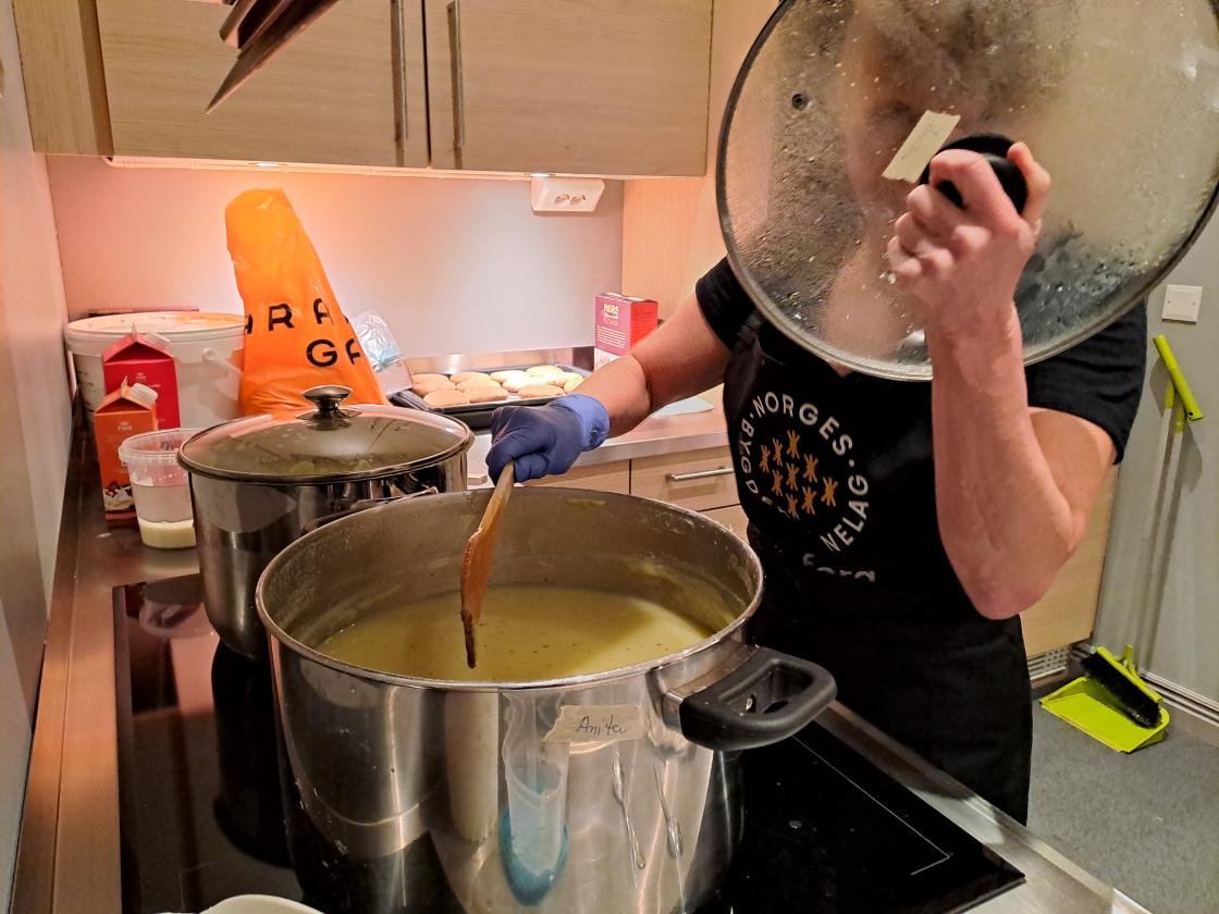Menyen vår var potet- og purreløksuppe laget av lokale råvarer og med et dryss av sprøstekt finnebiff, purreløkinger og hele tyttebær. Og attåt serverte vi nydelig gahkko. Oppskrifta på potet- og purreløksuppa er selvfølgelig henta fra www.norsktradisjonsmat.no !
